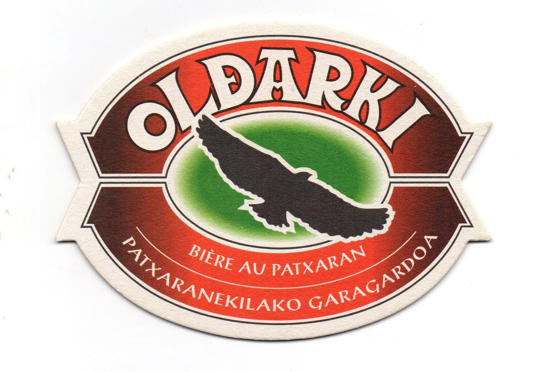 Sottobicchiere birra Oldarki, in cartoncino pressato monouso di forma ovale. Dimensioni cm 12,5 x 9,5.