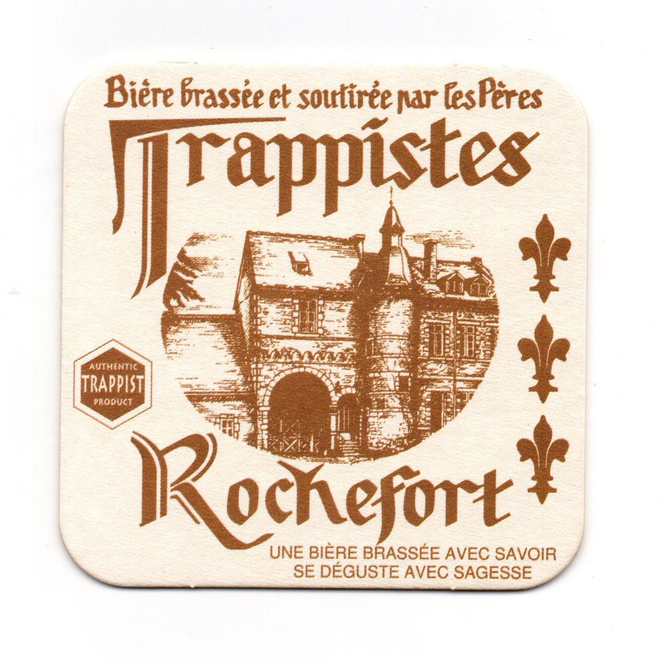 Sottobicchiere birra Trappistes Rochefort, in cartoncino pressato monouso di forma quadrata. Dimensioni cm 9 per lato.