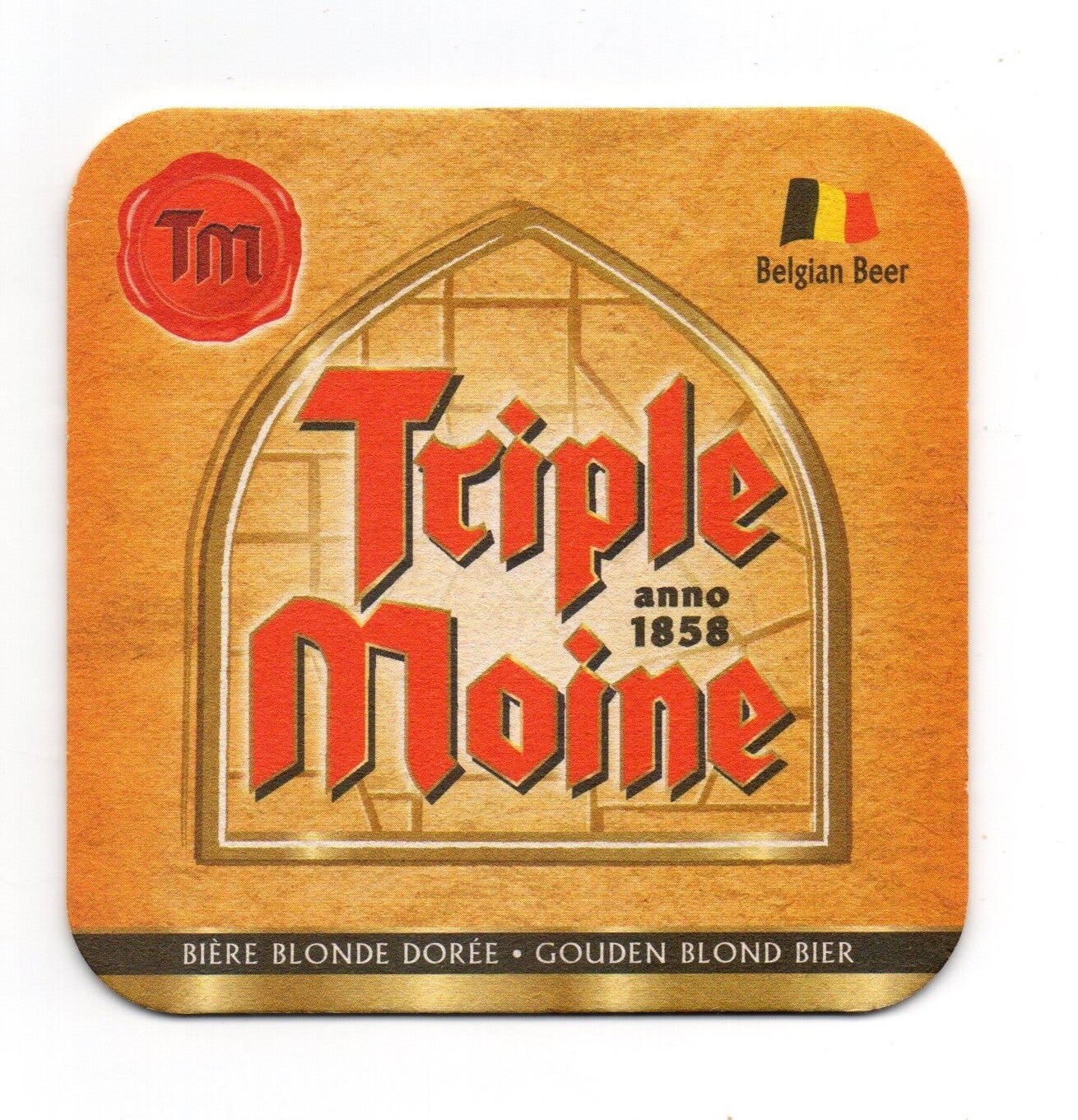Sottobicchiere birra Triple Moine, in cartoncino pressato monouso di forma quadrata. Dimensioni cm 9,5 per lato.