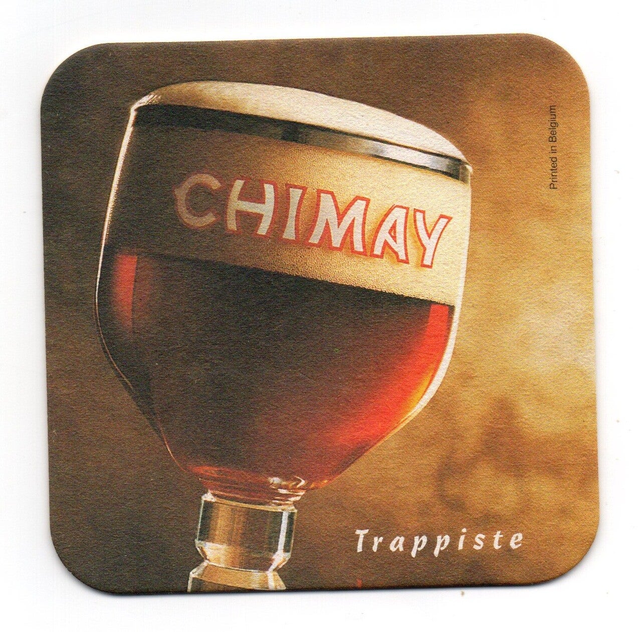 Sottobicchiere birra Chimay, in cartoncino pressato monouso di forma quadrata. Dimensioni cm 9,5 per lato.