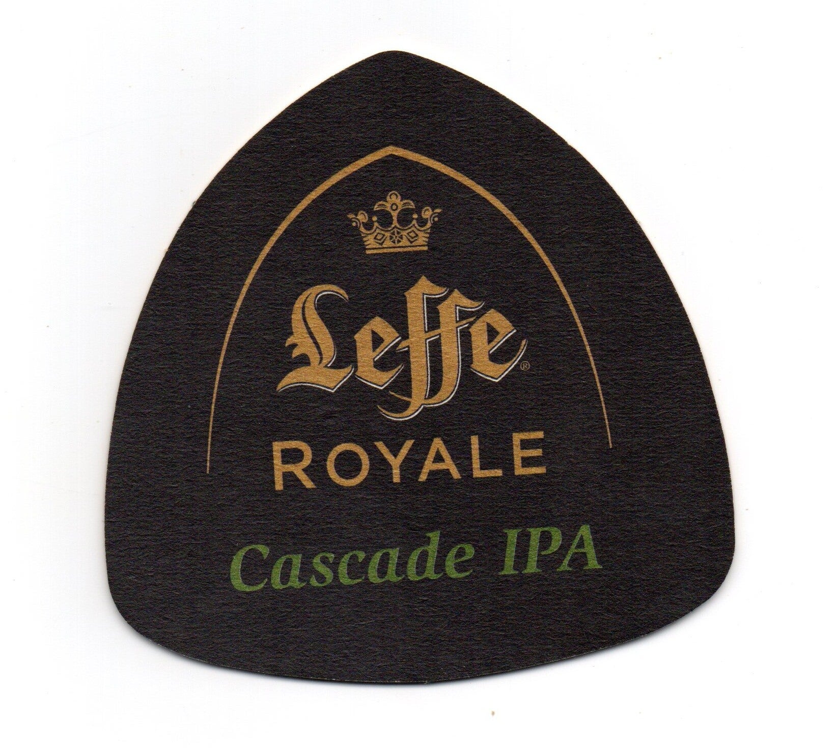 Sottobicchiere birra Leffe, in cartoncino pressato monouso a forma di campana. Dimensioni cm 10,5 x 10,5.