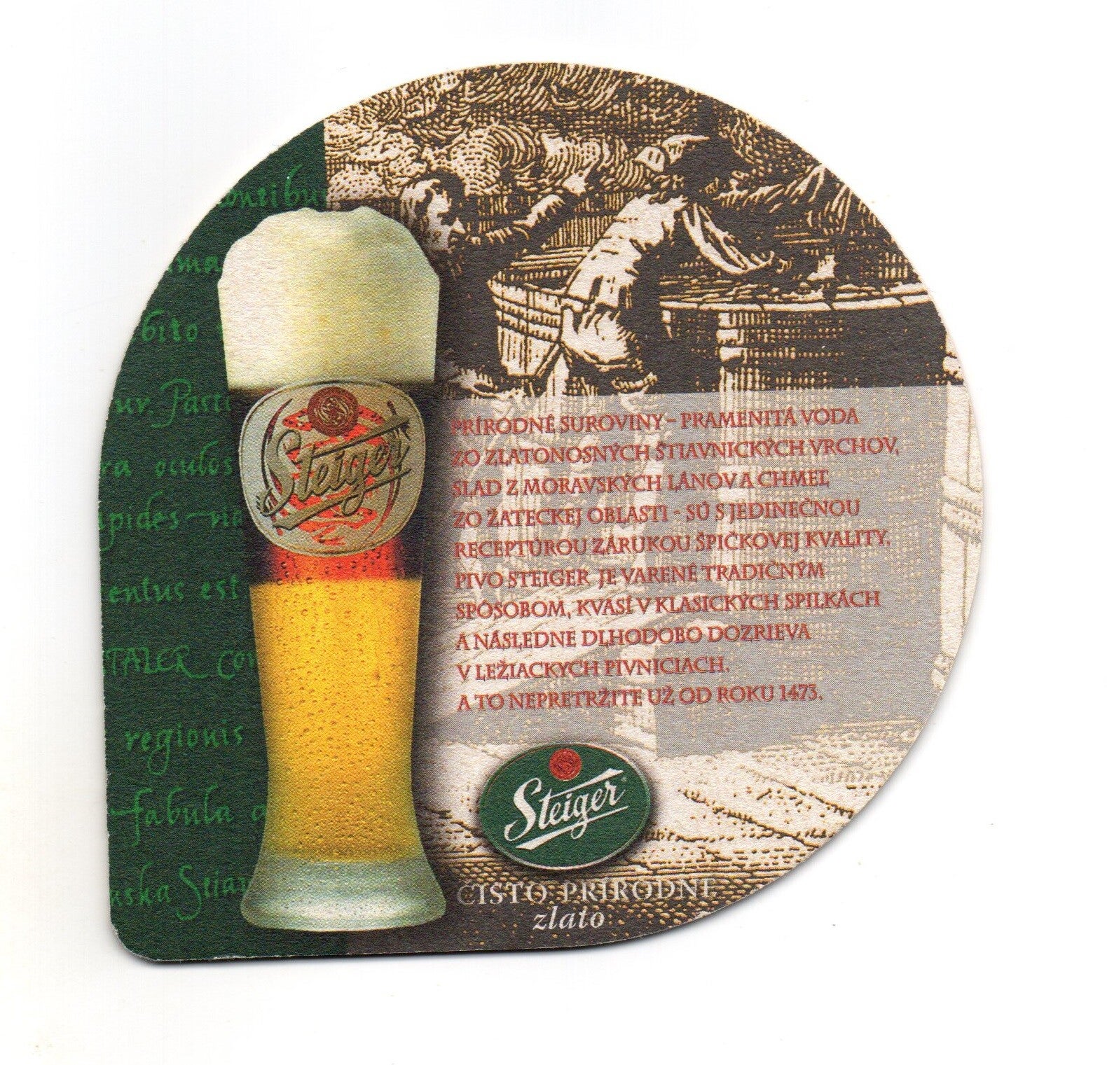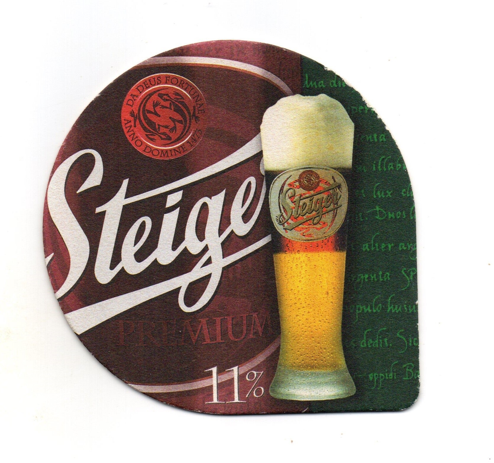 Sottobicchiere birra Steiger, in cartoncino pressato monouso a forma di goccia. Dimensioni cm 12,5 x 11.