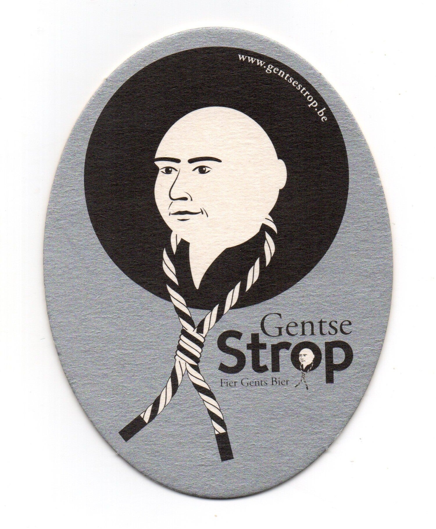 Sottobicchiere birra Gentse Strop, in cartoncino pressato monouso di forma ovale. Dimensioni cm 10,5 x 14.