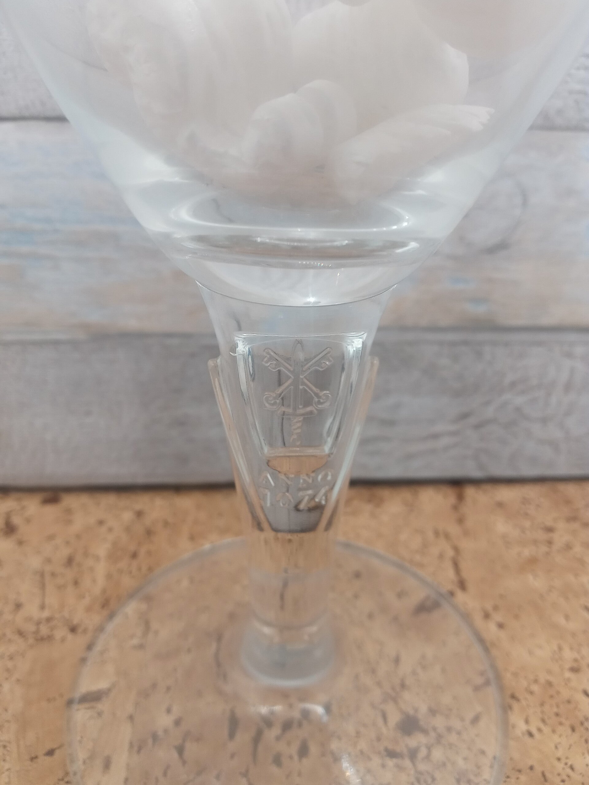 Bicchiere birra Affligem calice in vetro Ritzenhoff a forma di coppa della capacità alla tacca di 50 cl. Altezza cm 21,5. Diametro apertura cm 12. Elegante stelo che presenta sul davanti uno scudo a rilievo che riporta la scritta anno 1074.