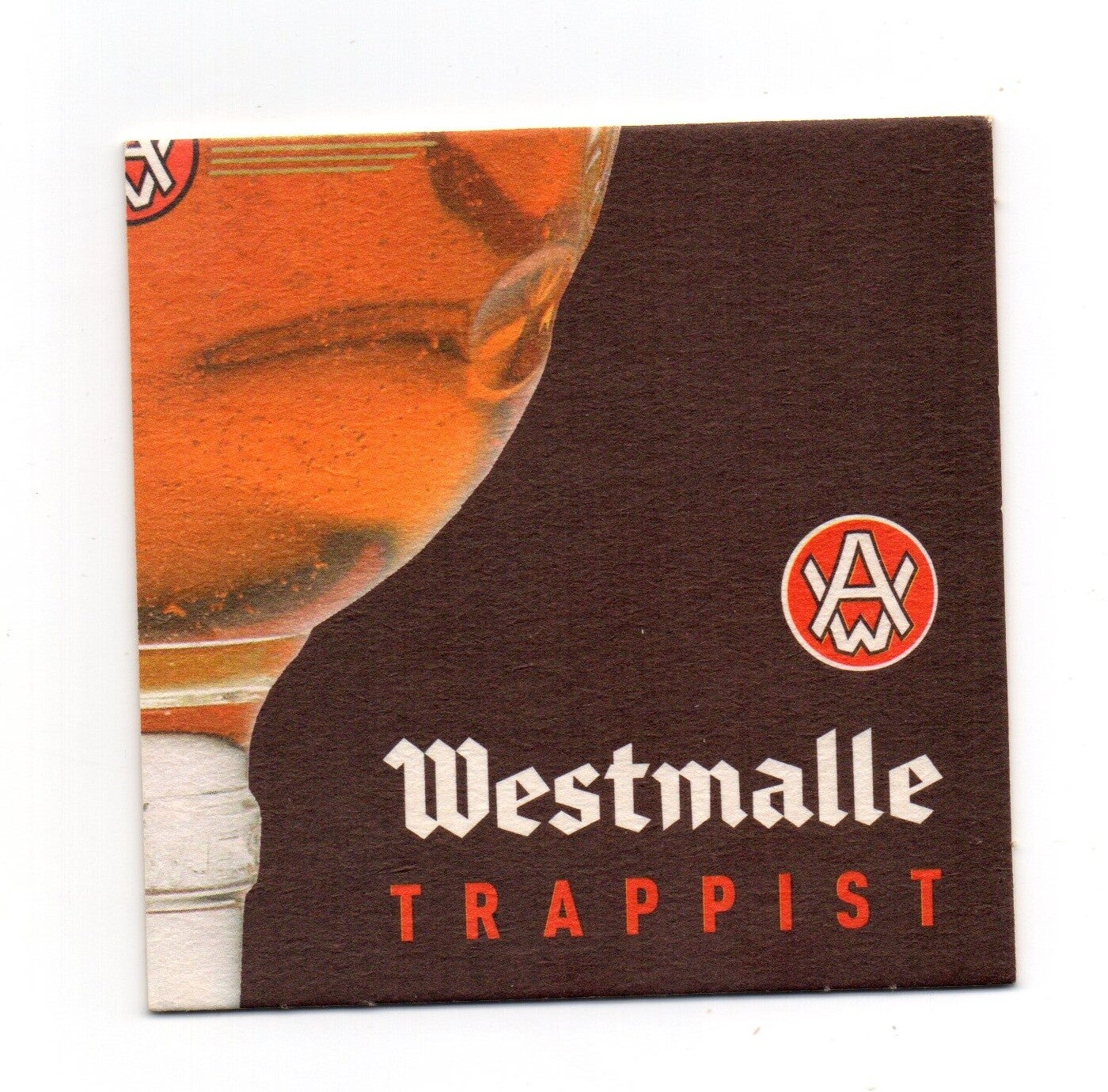 Sottobicchiere birra Westmalle, in cartoncino pressato monouso di forma quadrata. Dimensioni cm 9,5 per lato.
