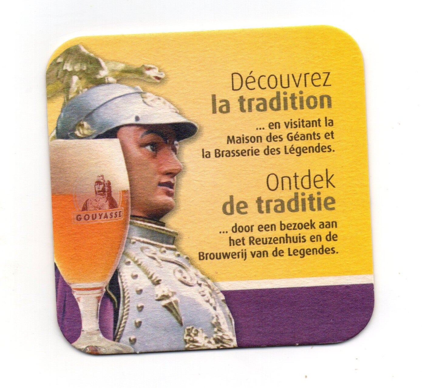 Sottobicchiere birra Gouyasse, in cartoncino pressato monouso di forma quadrata. Dimensioni cm 9 per lato.