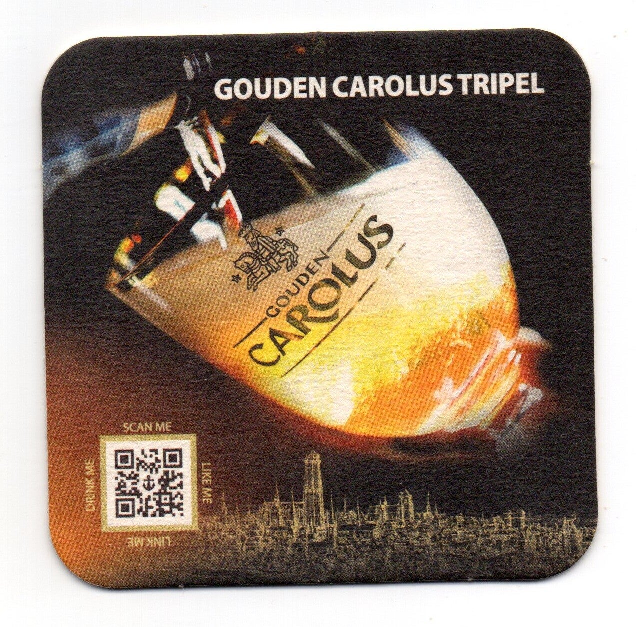 Sottobicchiere birra Gouden Carolus, in cartoncino pressato monouso di forma quadrata. Dimensioni cm 9,5 per lato.