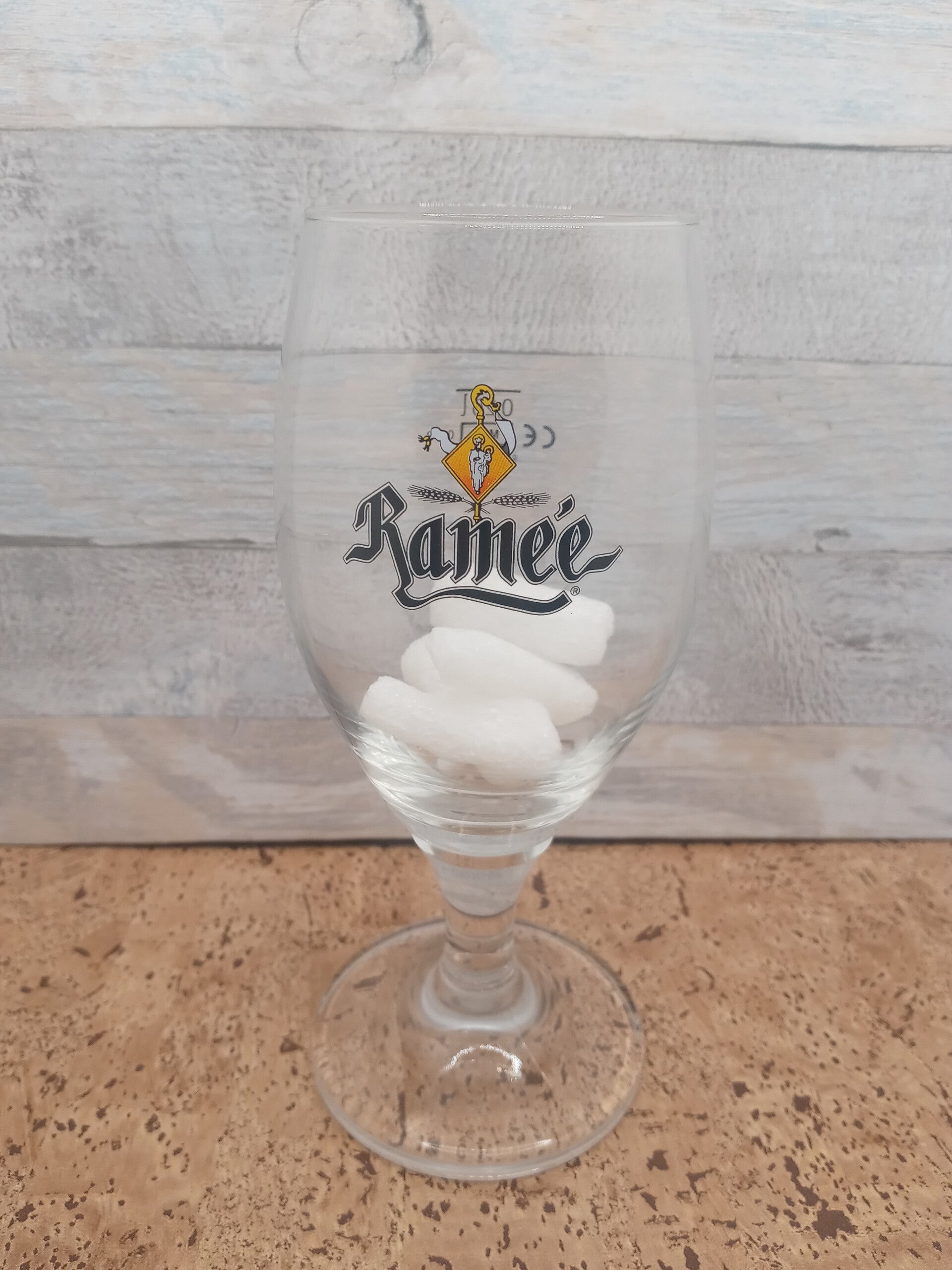Bicchiere birra Ramèe, calice in vetro Ritzenhoff con stelo e base robusti della capacità alla tacca di 25 cl. Altezza cm 18,5. Diametro apertura cm 6,5. Diametro base cm 7,5.