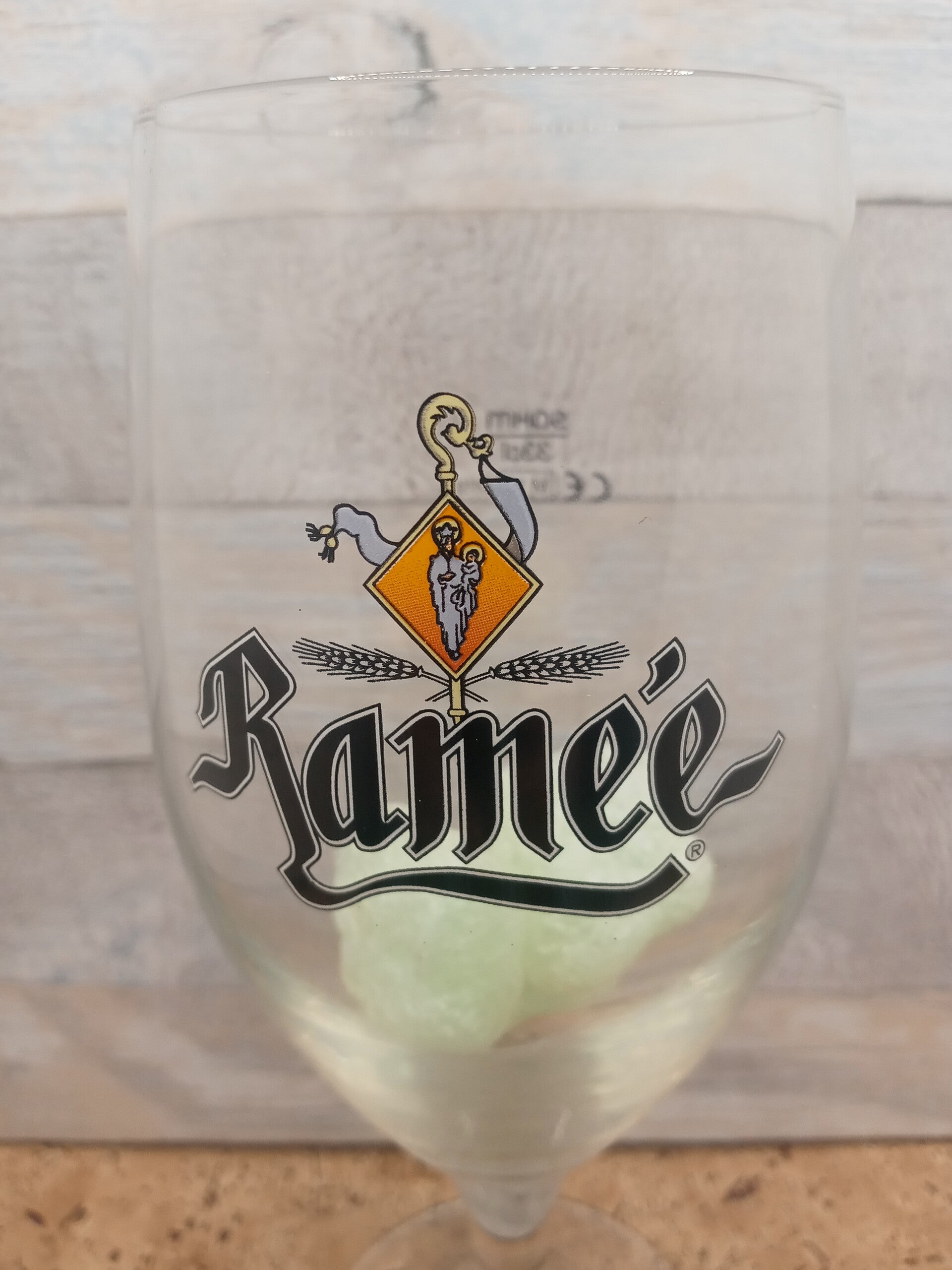 Bicchiere birra Ramèe, calice in vetro Sahm della capacità alla tacca di 33 cl. Altezza cm 20,5.