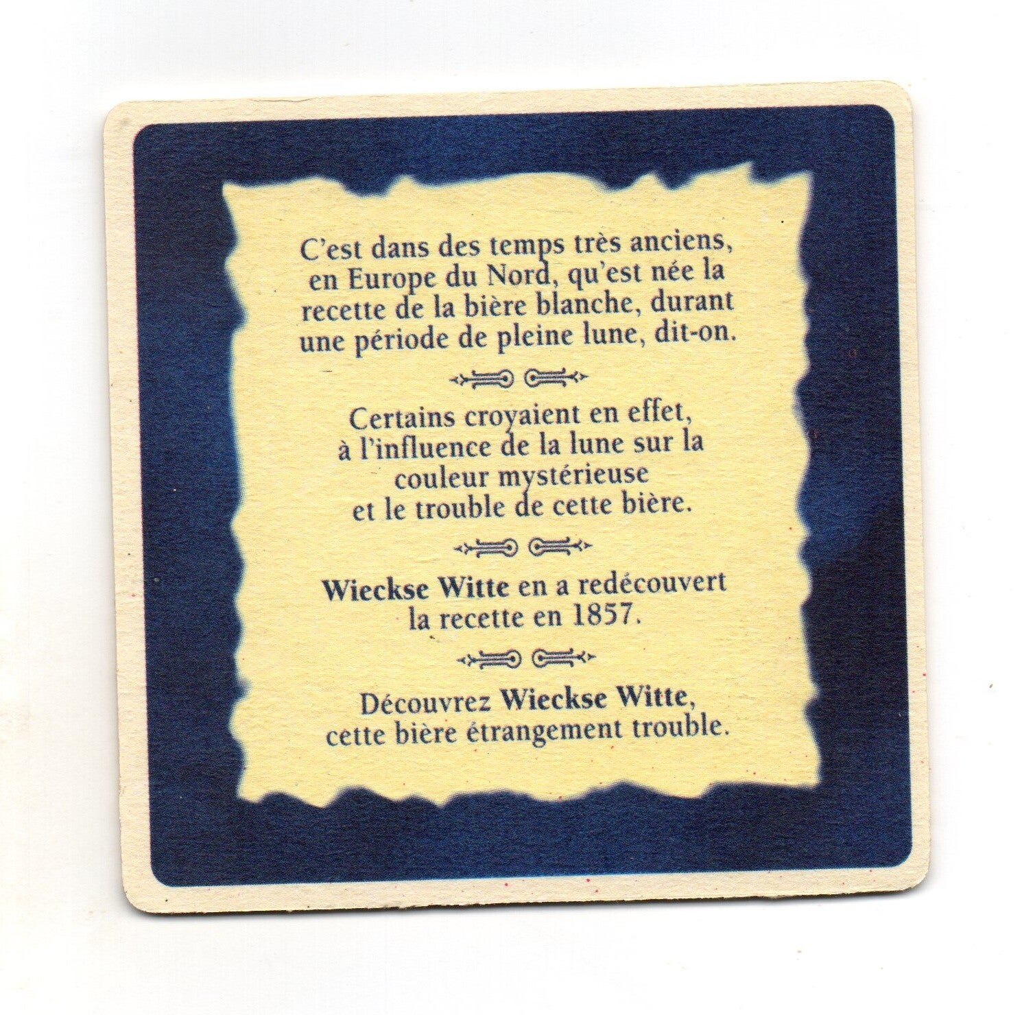 Sottobicchiere birra Wieckse Witte, in cartoncino pressato monouso di forma quadrata. Dimensioni cm 10 per lato.