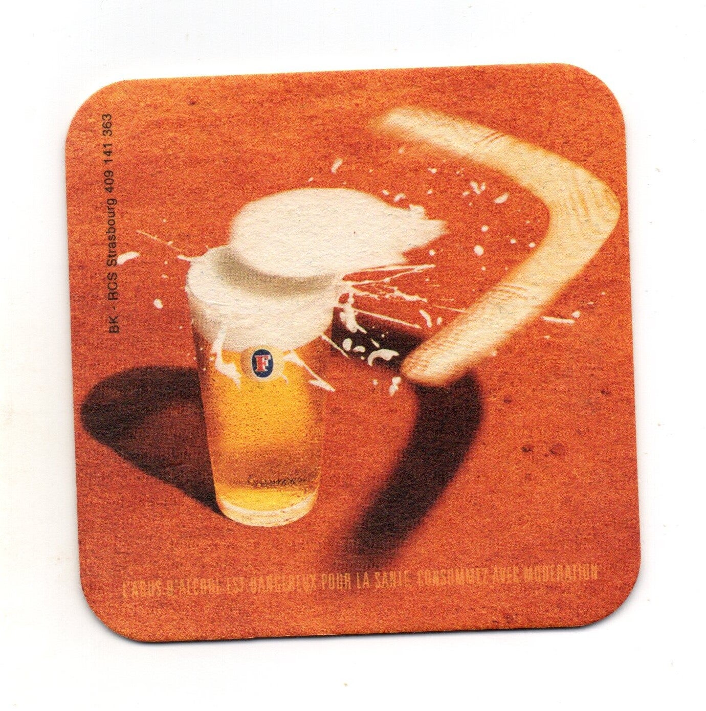 Sottobicchiere birra Foster's, in cartoncino pressato monouso di forma quadrata. Dimensioni cm 9,5 per lato.