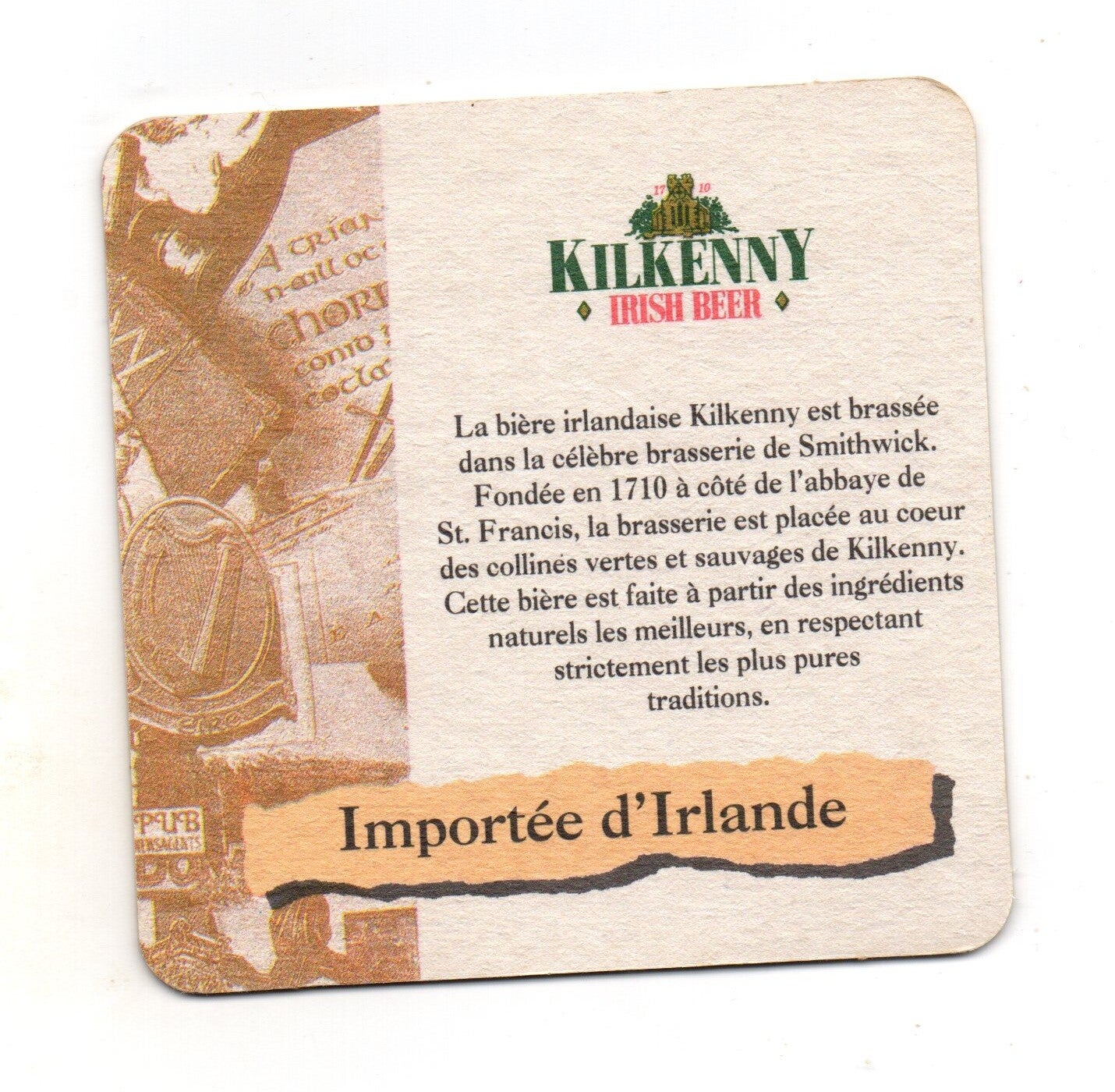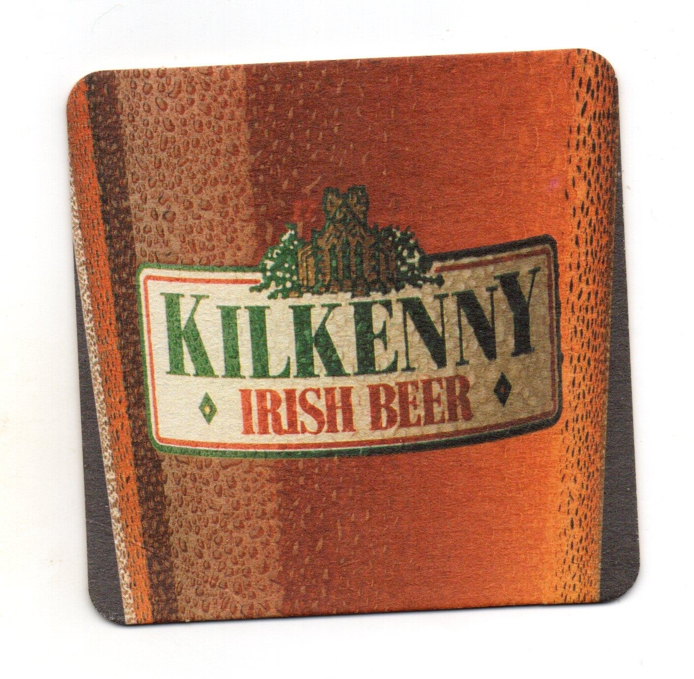 Sottobicchiere birra Kilkenny, in cartoncino pressato monouso di forma quadrata. Dimensioni cm 9,5 per lato.