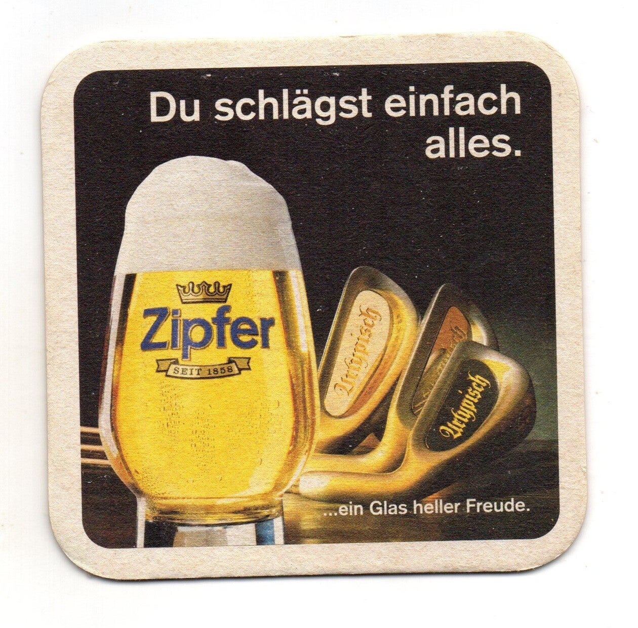 Sottobicchiere birra Zipfer, in cartoncino pressato monouso di forma quadrata. Dimensioni cm 9 per lato.