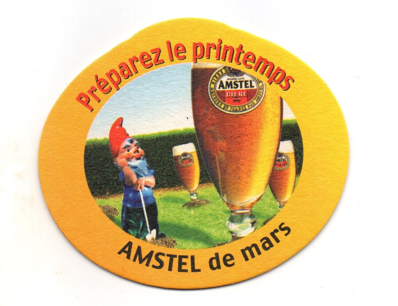 Sottobicchiere birra Amstel, in cartoncino pressato monouso di forma ovale. Dimensioni cm 10,5 x 9.