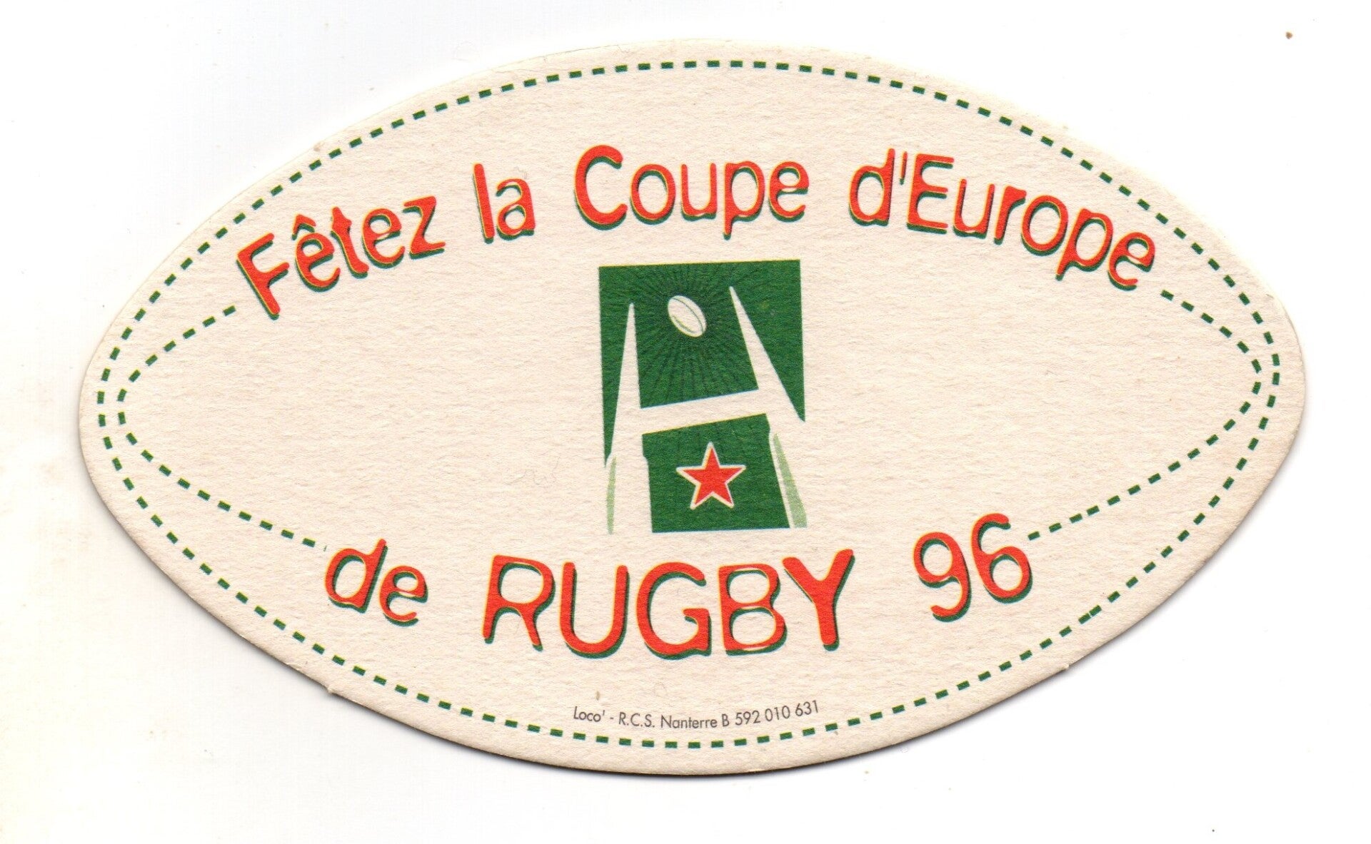 Sottobicchiere birra Heineken, in cartoncino pressato monouso di forma ovale. Dimensioni cm 15 x 9.