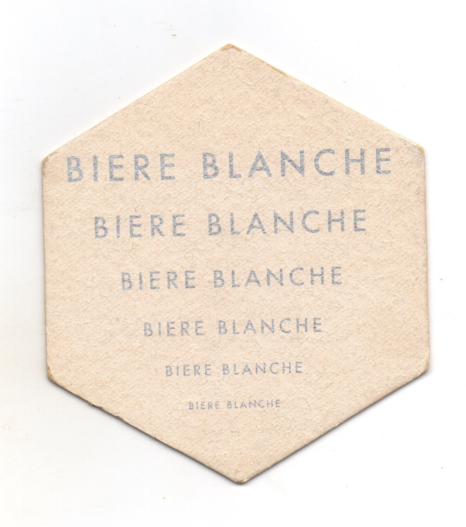 Sottobicchiere birra Hoegaarden, in cartoncino pressato monouso di forma esagonale. Dimensioni cm 6,5 per lato.