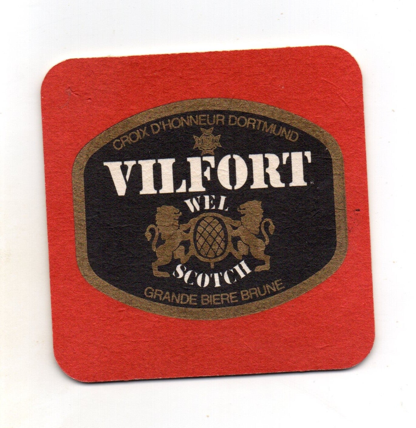 Sottobicchiere birra Vilfort, in cartoncino pressato monouso di forma quadrata. Dimensioni cm 9 per lato.