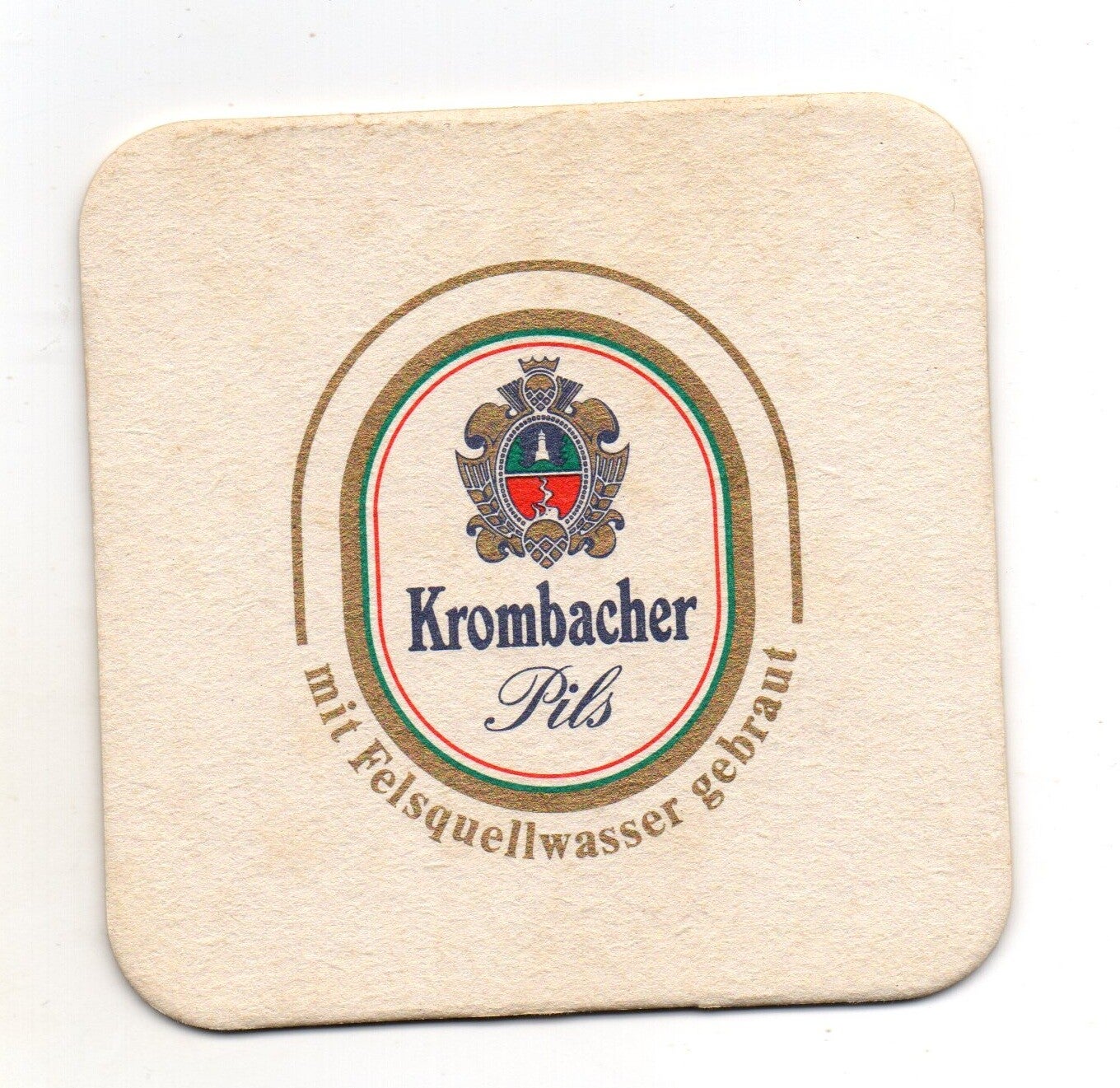 Sottobicchiere birra Krombacher, in cartoncino pressato monouso di forma quadrata. Dimensioni cm 9,5 per lato.