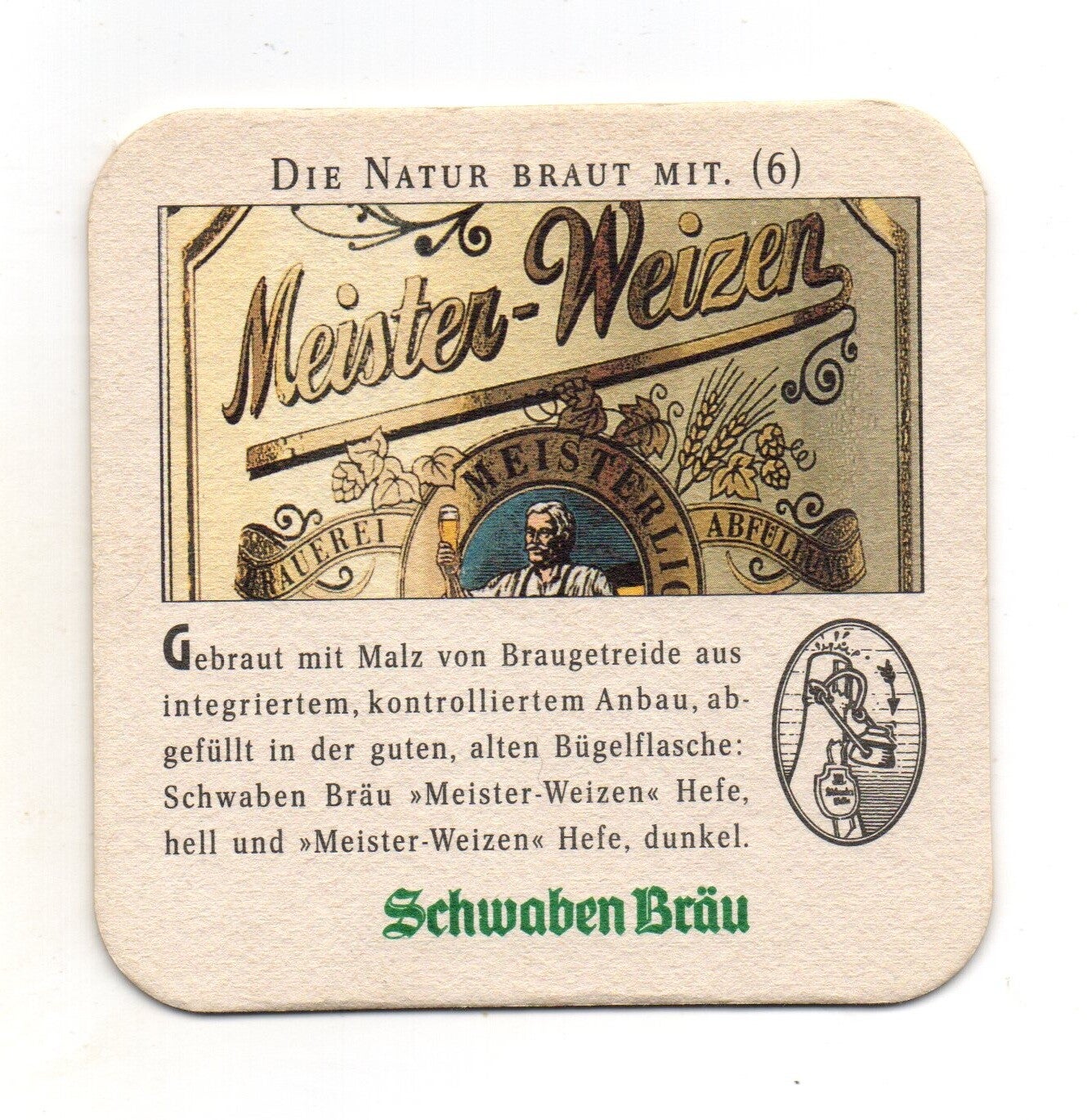 Sottobicchiere birra Schwaben Brau, in cartoncino pressato monouso di forma quadrata. Dimensioni cm 9 per lato.