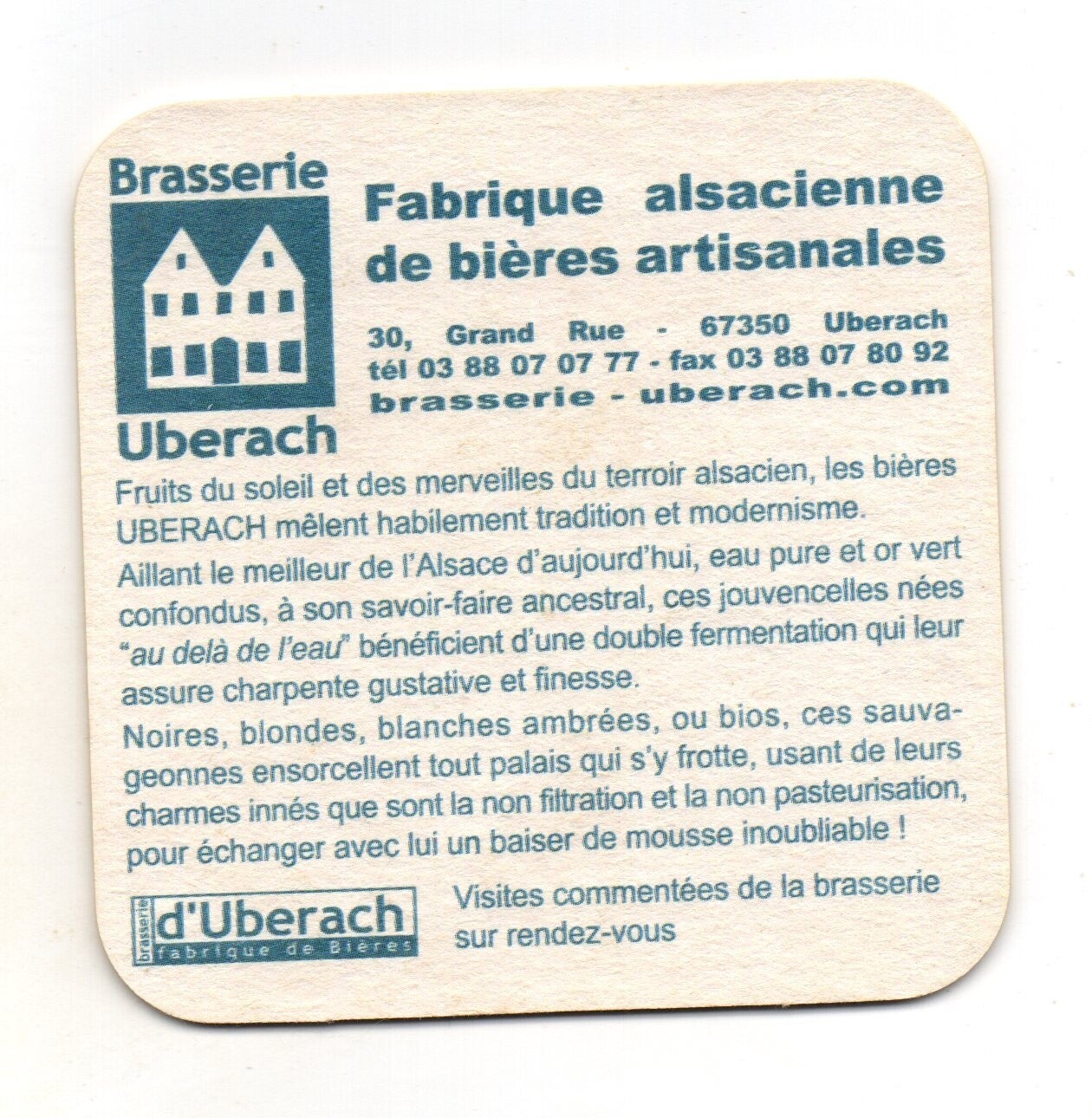 Sottobicchiere birra Uberach, in cartoncino pressato monouso di forma quadrata. Dimensioni cm 9 per lato.