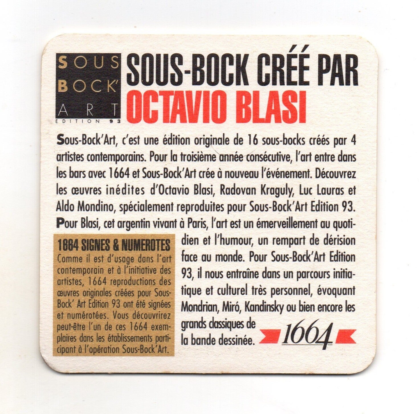 Sottobicchiere Kronenbourg 1664 Art ed. 93 Octavio Blasi_1