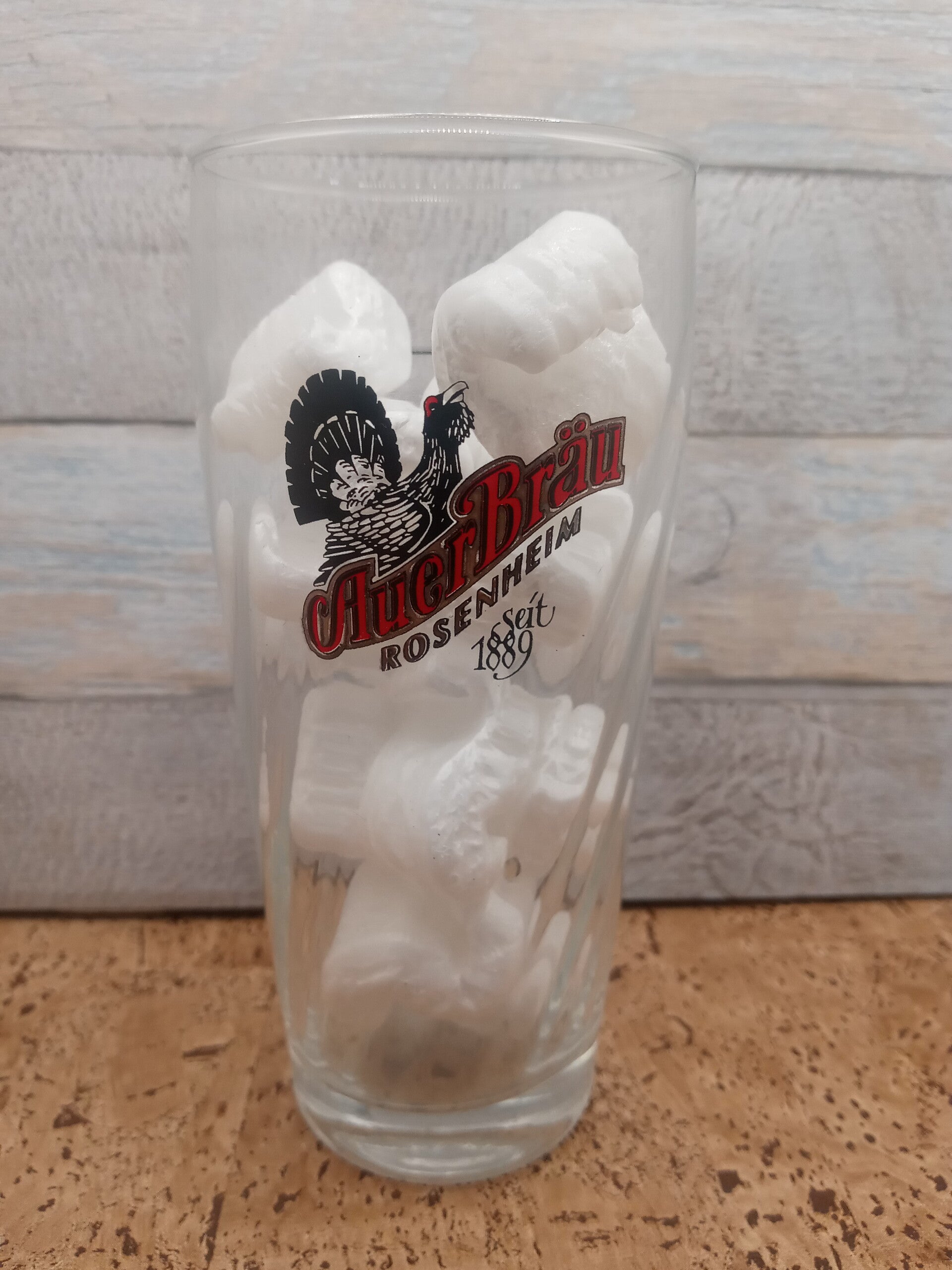 Bicchiere birra Auerbrau Rosenheim seit 1889 in vetro della capacità alla tacca di 25 cl. Altezza cm 14,5.