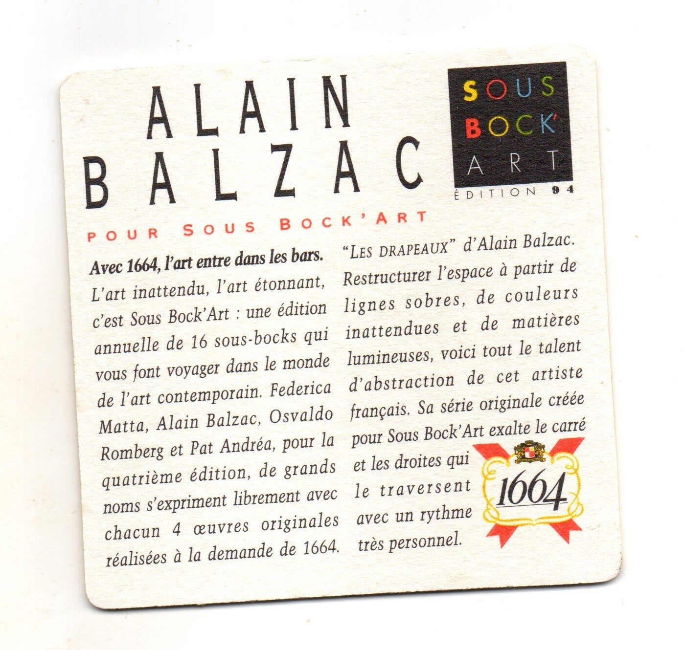 Sottobicchiere Kronenbourg 1664 Art Ed. 94 Alain Balzac viola