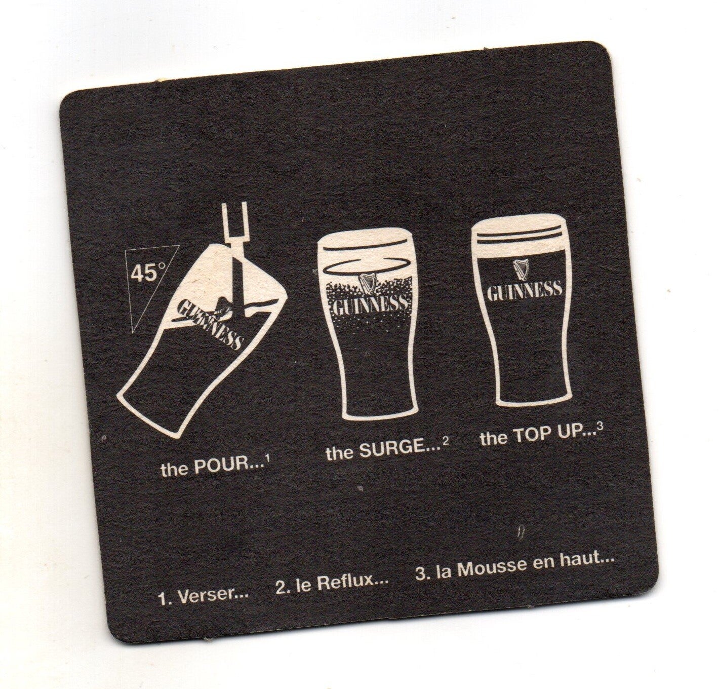 Sottobicchiere birra Guinness, in cartoncino pressato monouso di forma quadrata. Dimensioni cm 9,5 per lato.