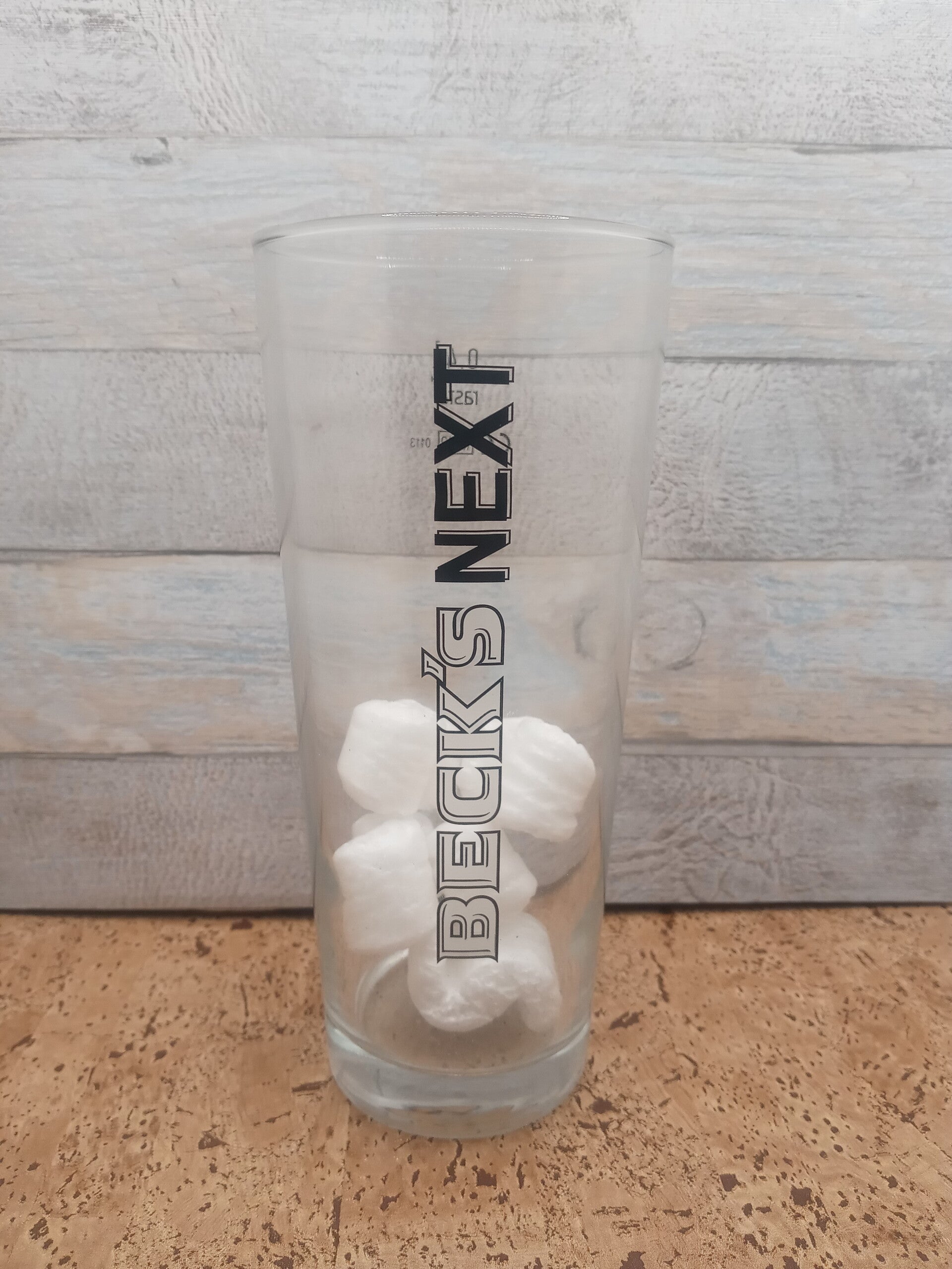 Bicchiere birra Beck's Next in vetro Rastal della capacità alla tacca di 40 cl. Altezza cm 17,5.