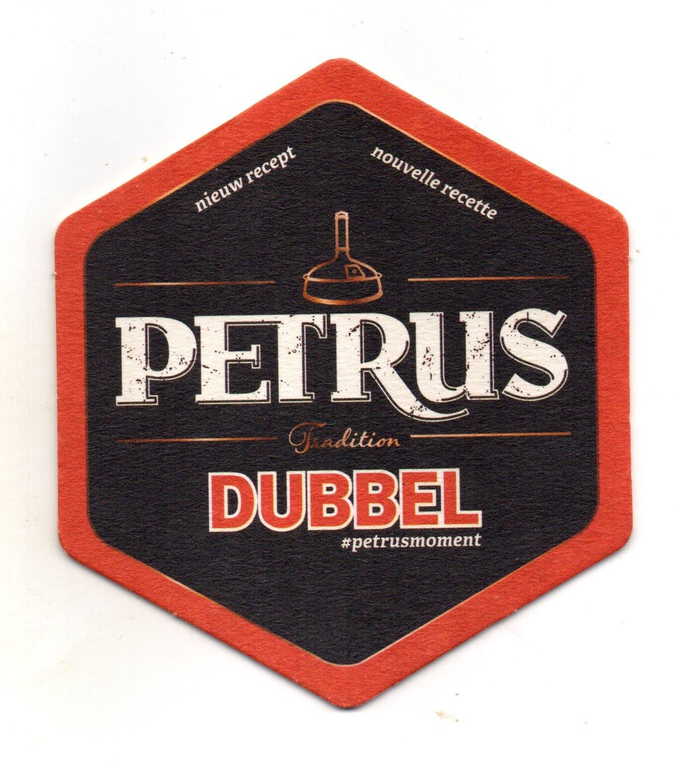 Sottobicchiere birra Petrus, in cartoncino pressato monouso di forma esagonale. Dimensioni cm 5,5 per lato.