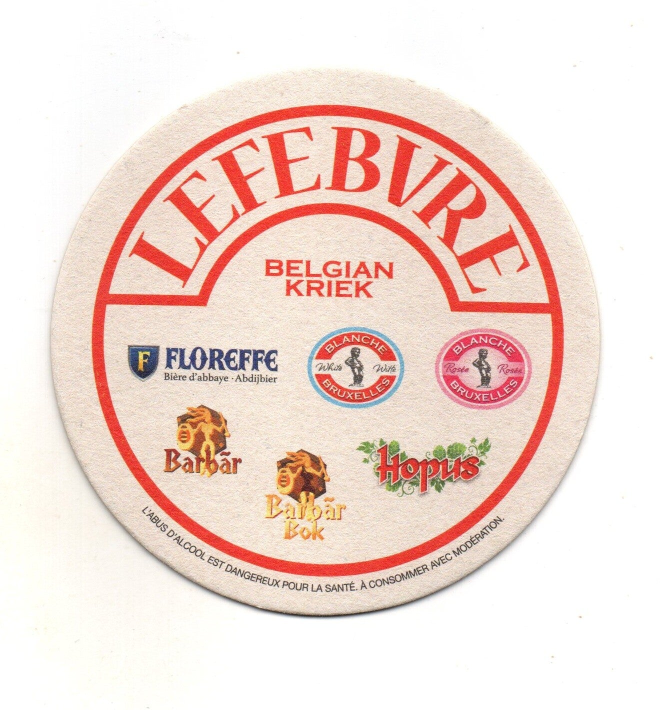 Sottobicchiere birra Lefebvre, in cartoncino pressato monouso di forma rotonda. Diametro cm 9,5.