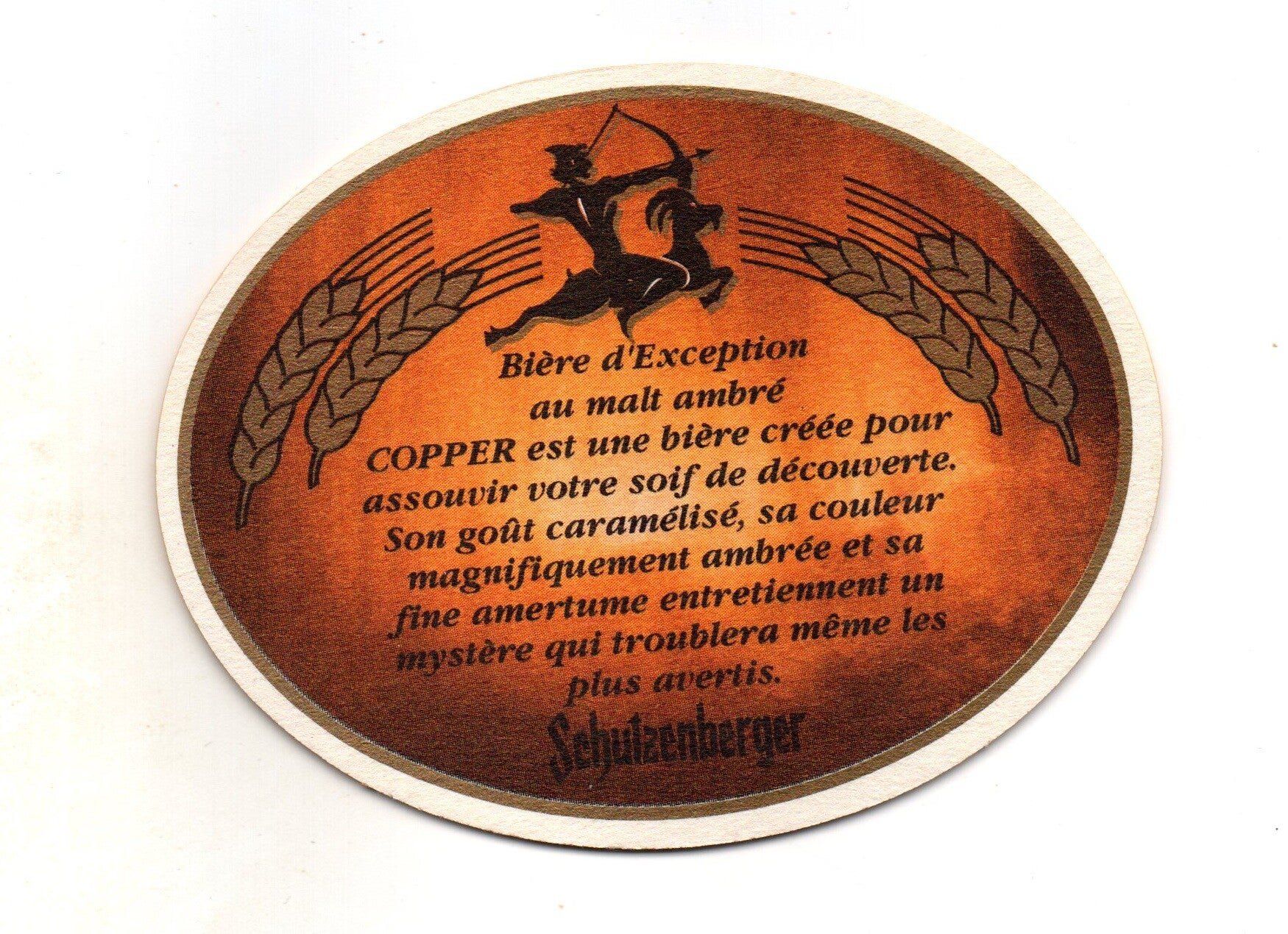 Sottobicchiere birra Copper, in cartoncino pressato monouso di forma ovale. Dimensioni cm 11,5 x 9.