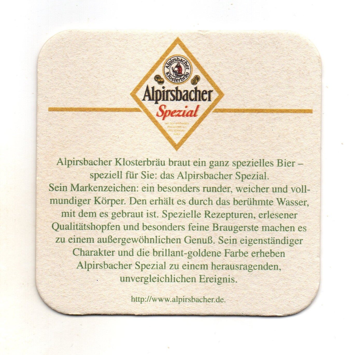 Sottobicchiere birra Alpirsbacher, in cartoncino pressato monouso di forma quadrata. Dimensioni cm 9,5 per lato.