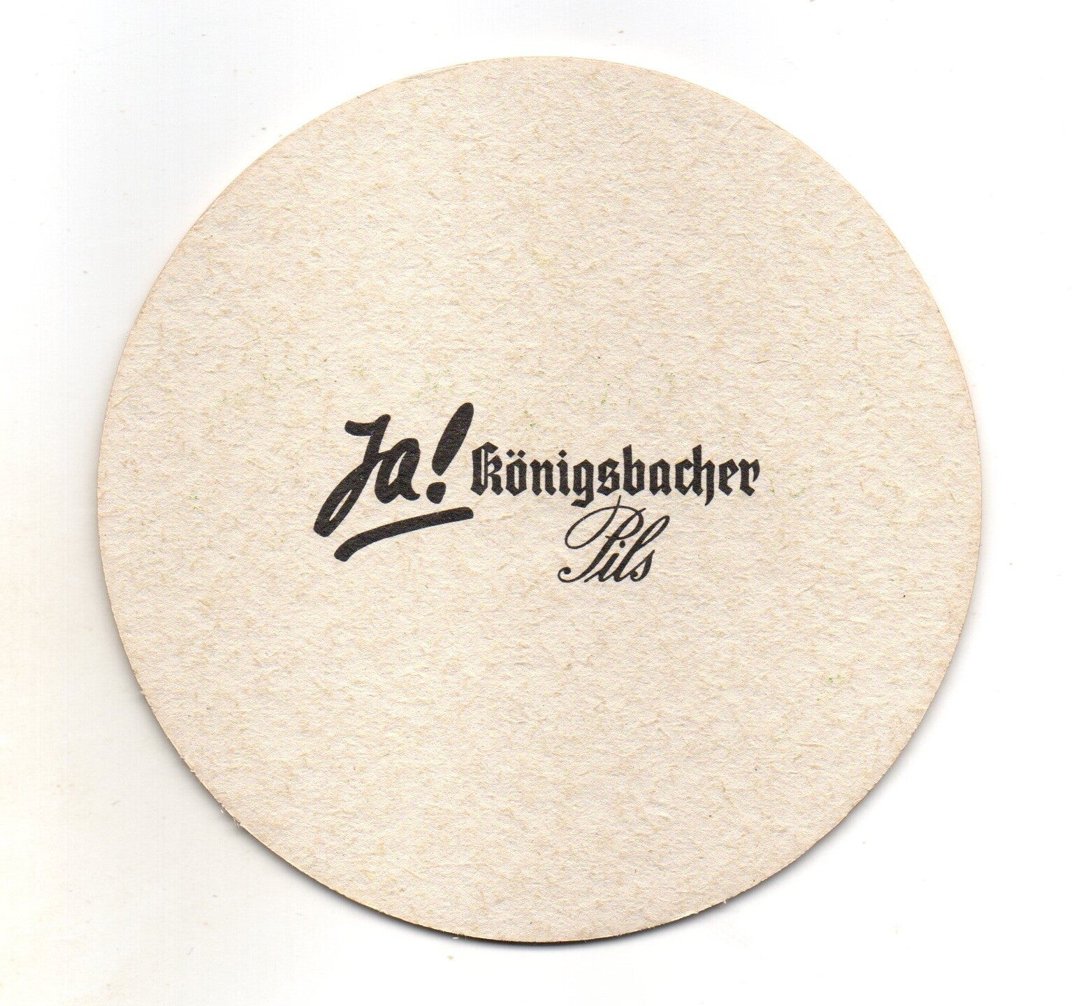 Sottobicchiere birra Konigsbacher, in cartoncino pressato monouso di forma rotonda. Diametro cm 11.