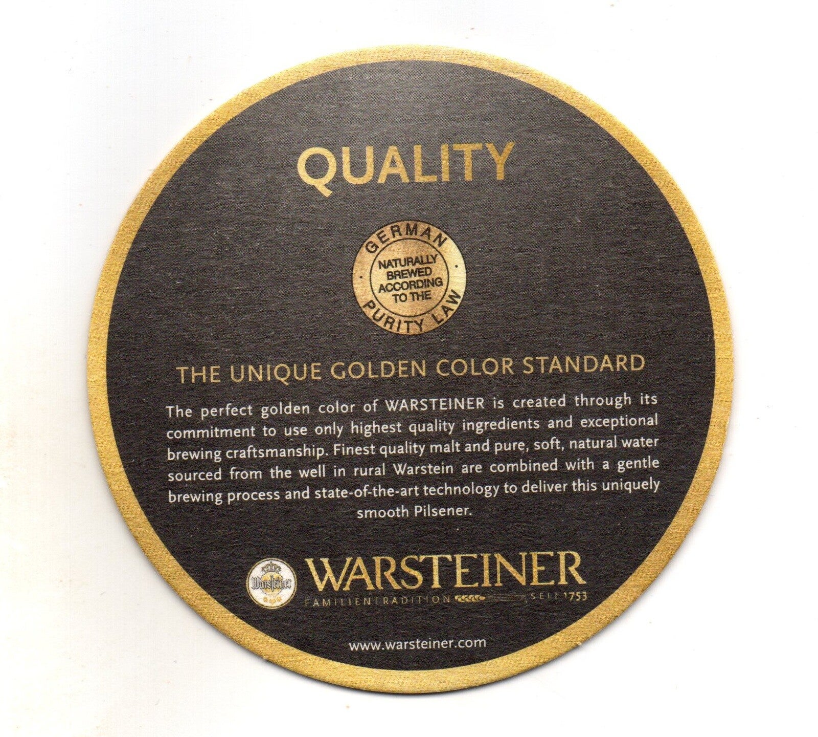 Sottobicchiere birra Warsteiner, in cartoncino pressato monouso di forma rotonda. Diametro cm 11.