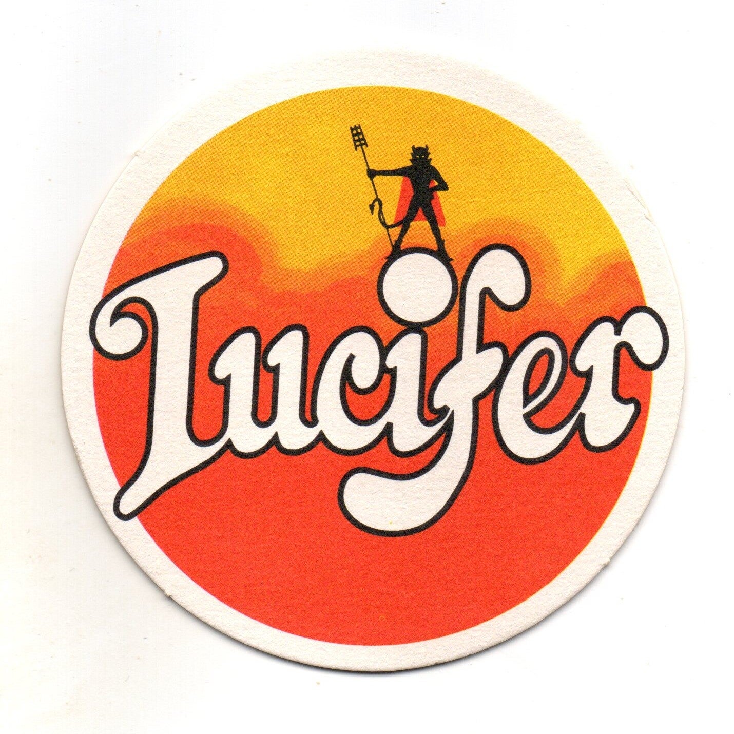 Sottobicchiere birra Lucifer, in cartoncino pressato monouso di forma rotonda. Diametro cm 10,5.