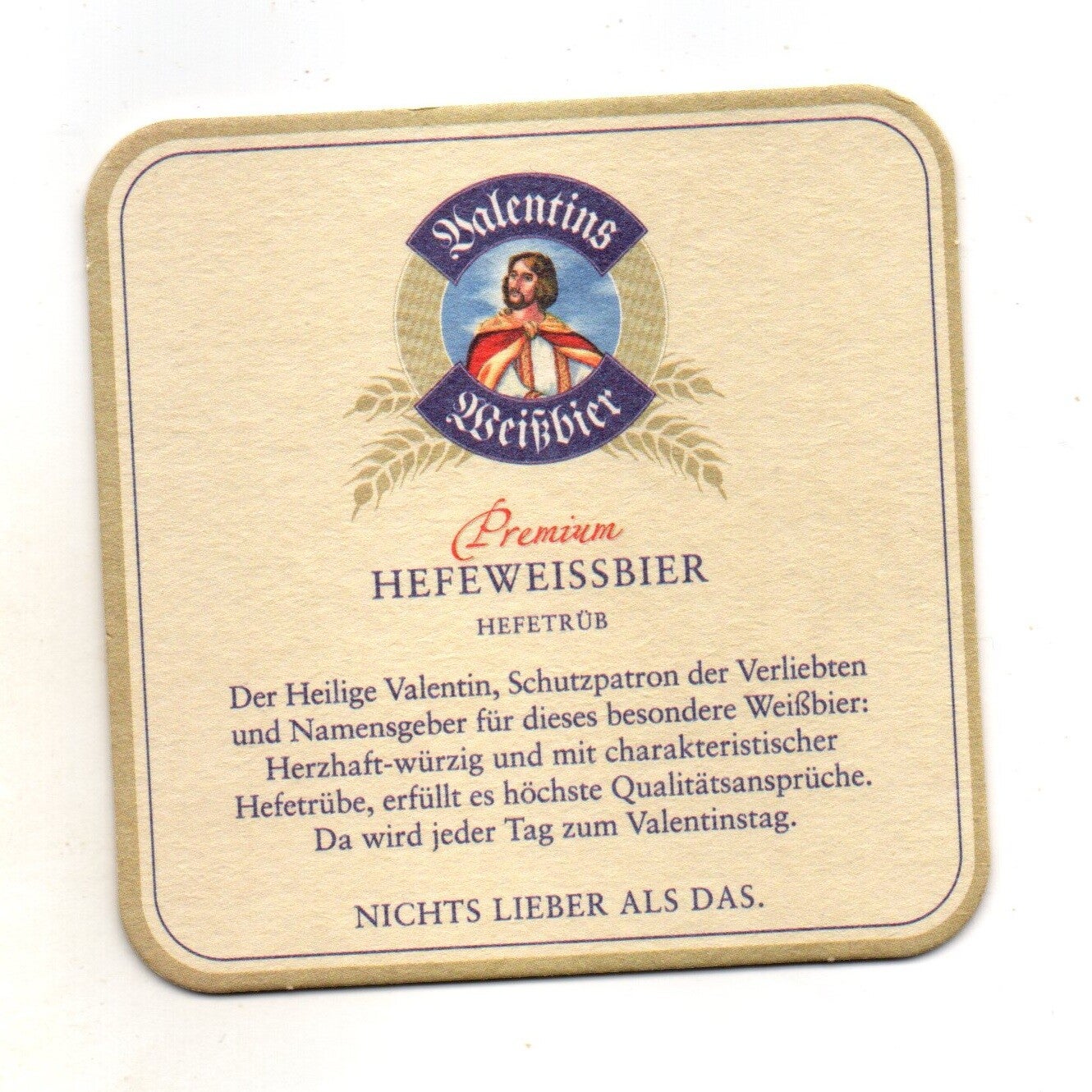 Sottobicchiere birra Valentins, in cartoncino pressato monouso di forma quadrata. Dimensioni cm 9 per lato.