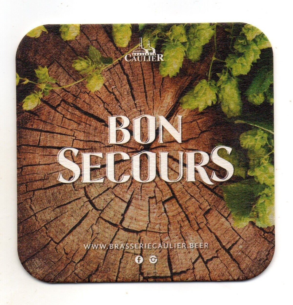 Sottobicchiere birra Bon Secours, in cartoncino pressato monouso di forma quadrata. Dimensioni cm 9 per lato.
