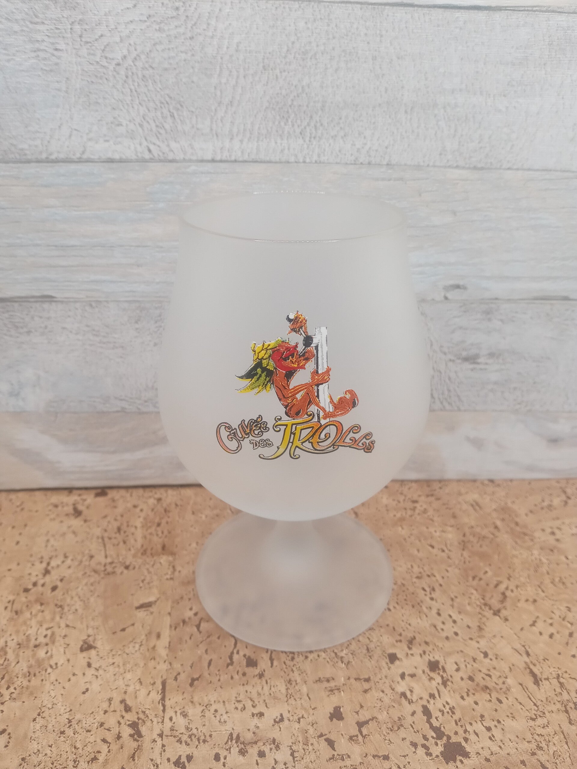Bicchiere birra Cuvèe des Trolls vintage in vetro satinato, calice a forma di coppa della capacità massima alla tacca di 25 cl. Altezza cm 14.