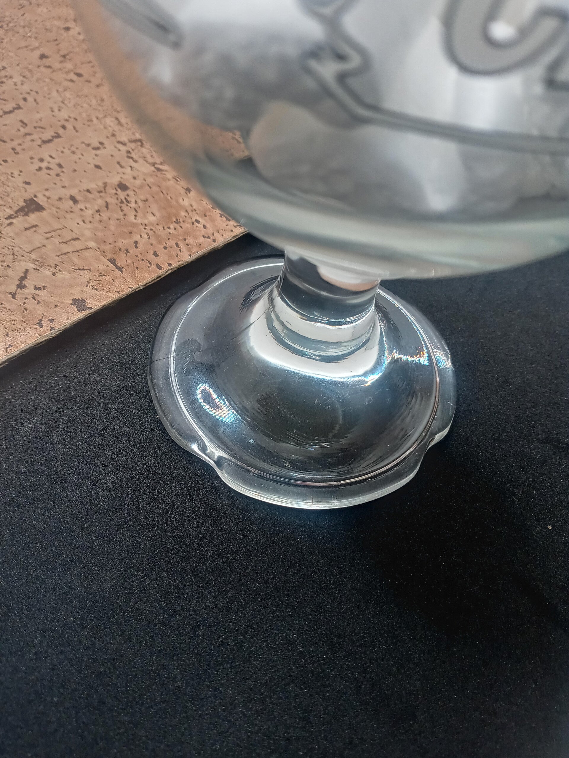 Base a forma di fiore. Il perlage è garantito dai punti di incisione all'interno della coppa che raffigurano la lettera "C".