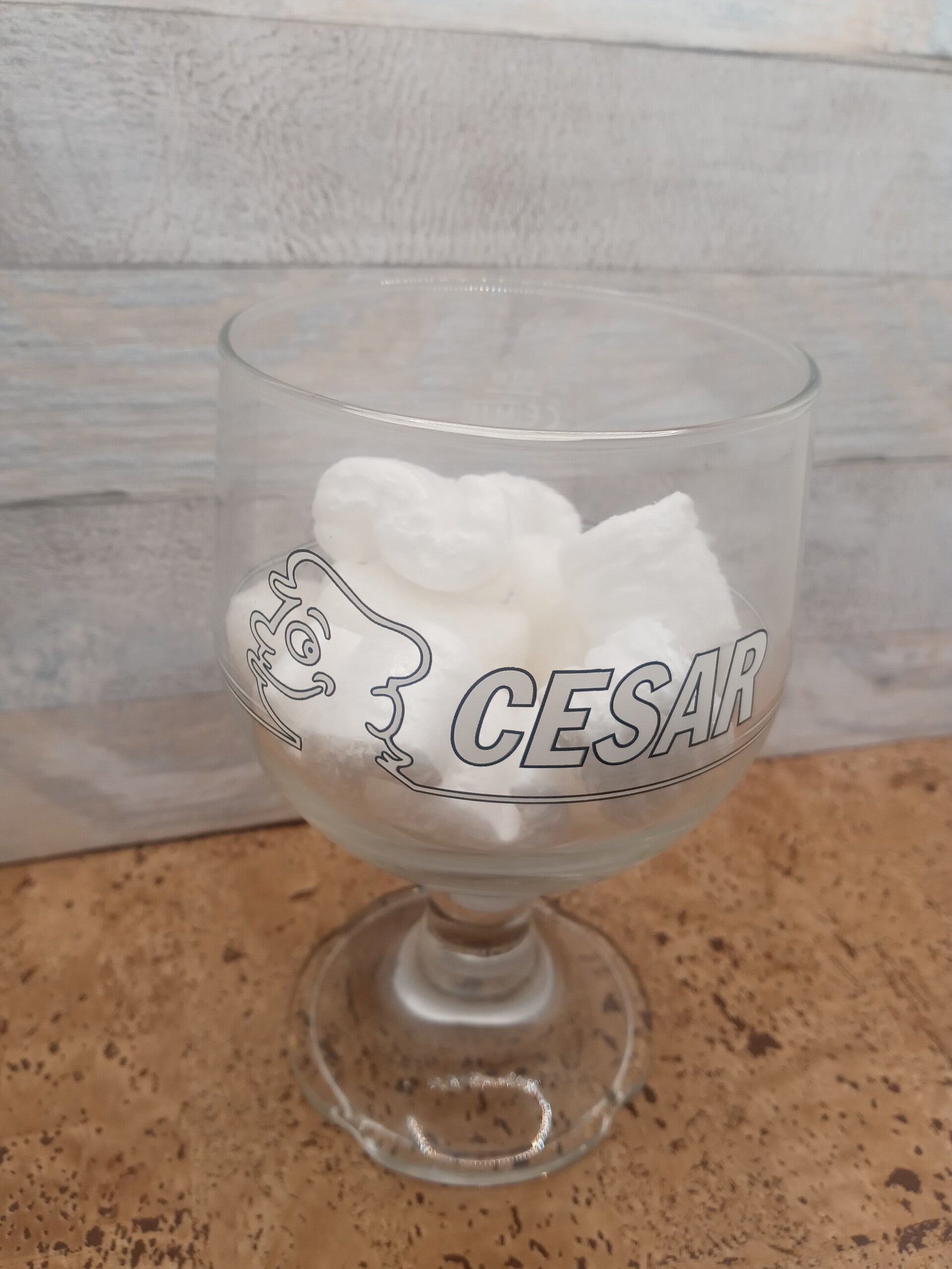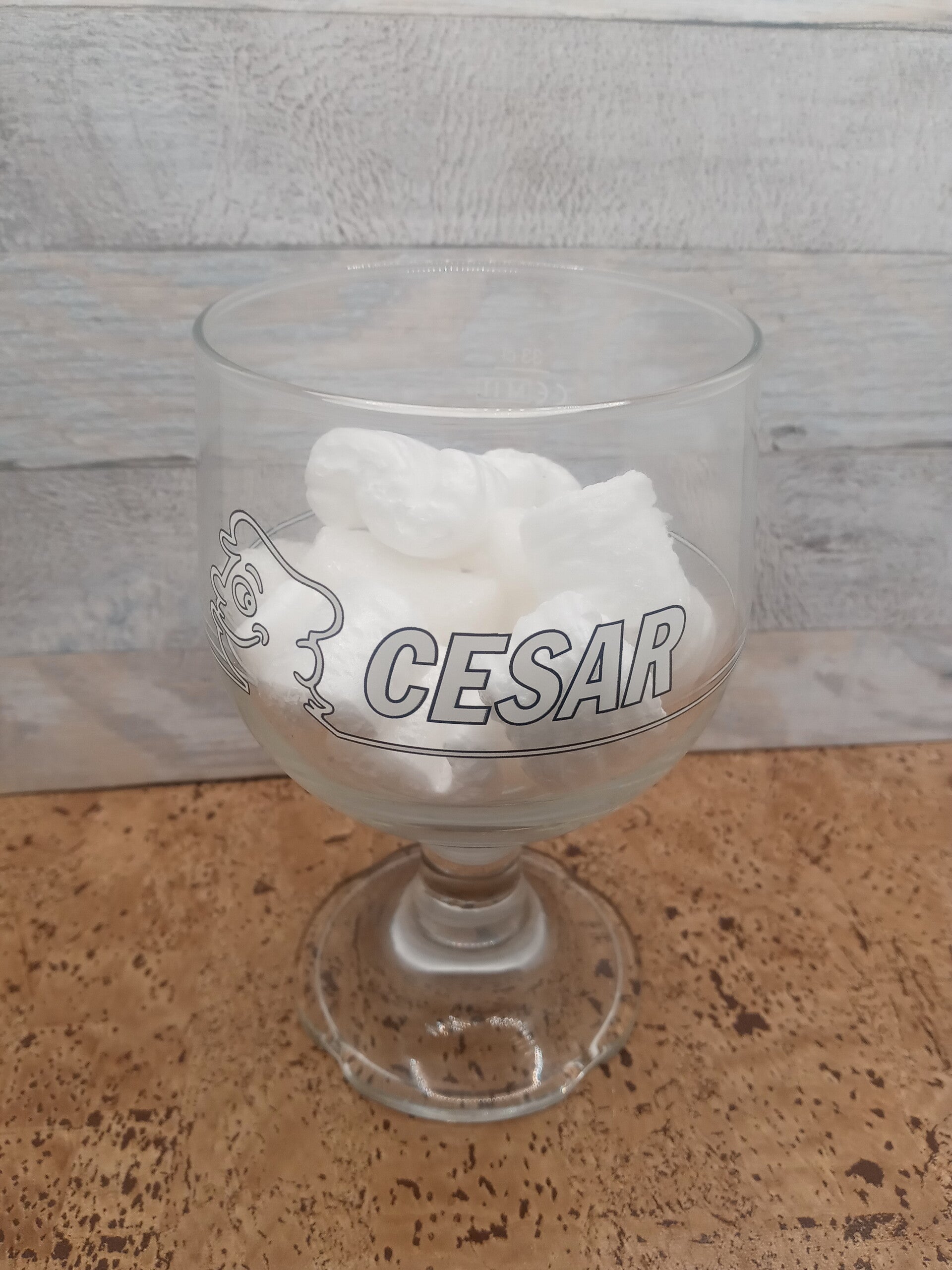 Bicchiere birra Cesar, grande coppa in vetro Durobor della capacità alla tacca di 33 cl. Altezza cm 15. Diametro apertura cm 9. Diametro base cm 8.