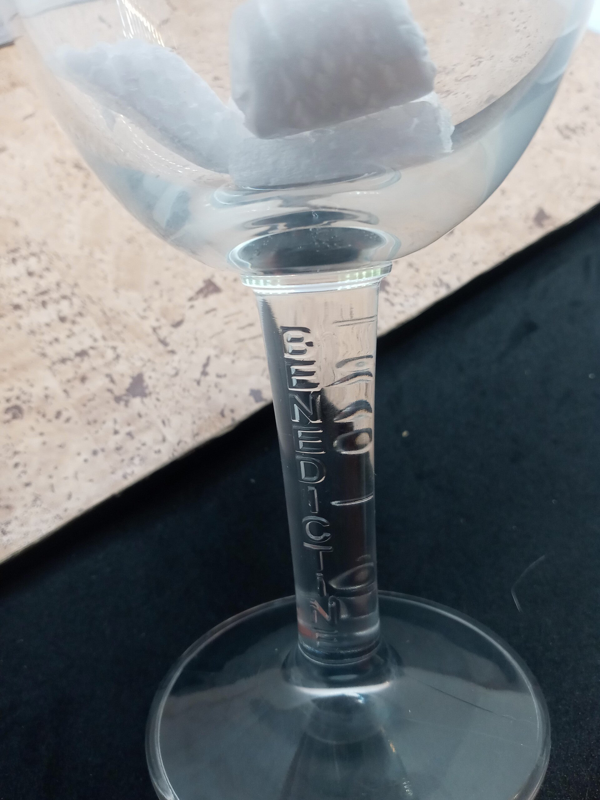 Importante stelo con la scritta verticale "Benedictine" sul davanti e "Tradition" sul retro entrambe in rilievo.