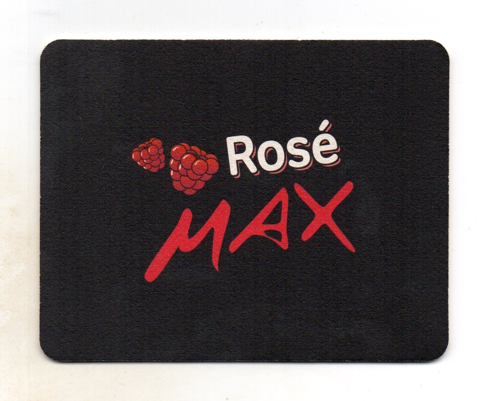 Sottobicchiere birra Max Rosè, in cartoncino pressato monouso di forma rettangolare. Dimensioni cm 12,5 x 9,5.