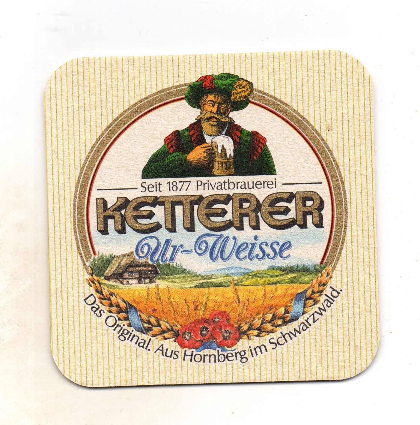 Sottobicchiere birra Ketterer, in cartoncino pressato monouso di forma quadrata. Dimensioni cm 9 per lato.