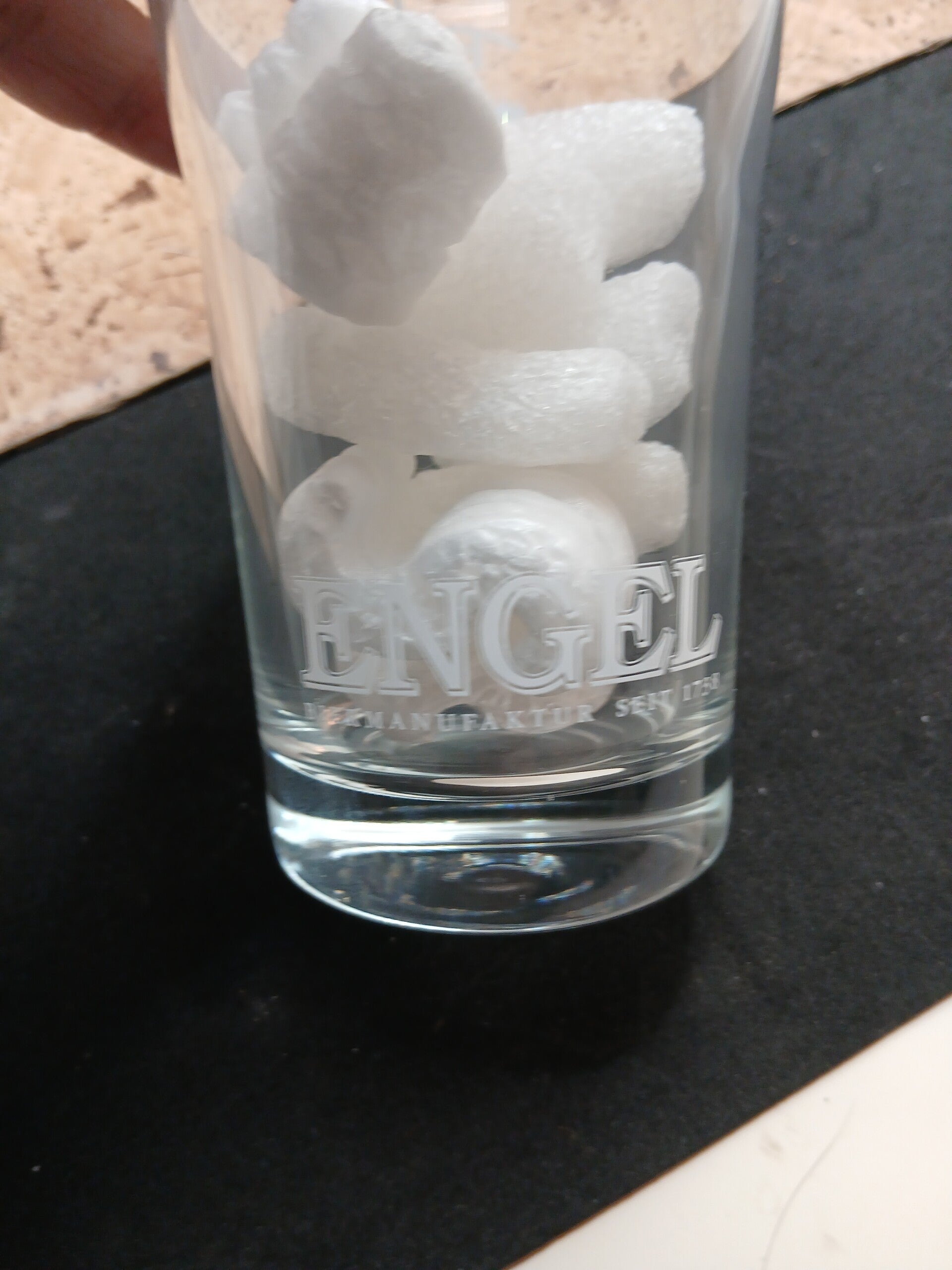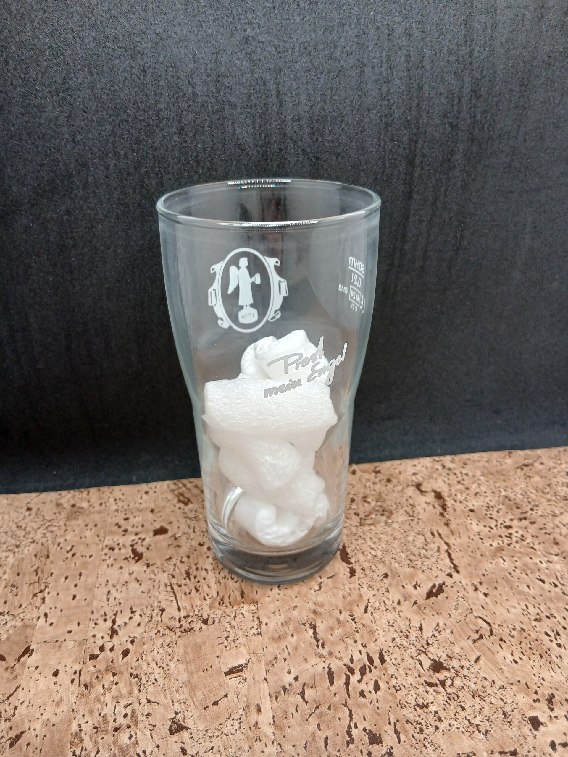 Bicchiere birra Engel Biermanufaktur seit 1738, biconico in vetro Sahm della capacità massima alla tacca di 20 cl. Altezza cm 13. Diametro apertura cm 6. Diametro base cm 5.