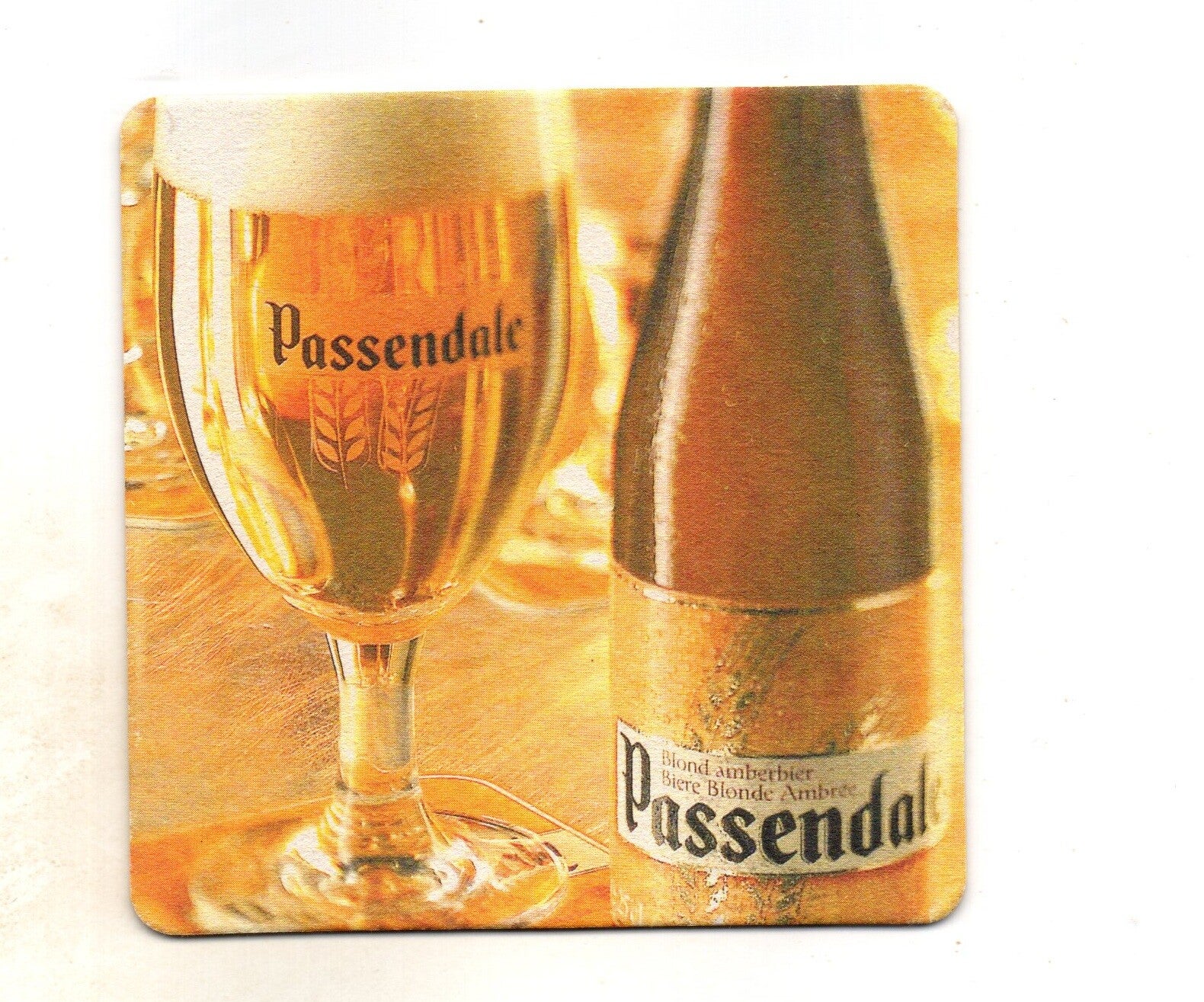 Sottobicchiere birra Passendale, in cartoncino pressato monouso di forma quadrata. Dimensioni cm 9,5 per lato.