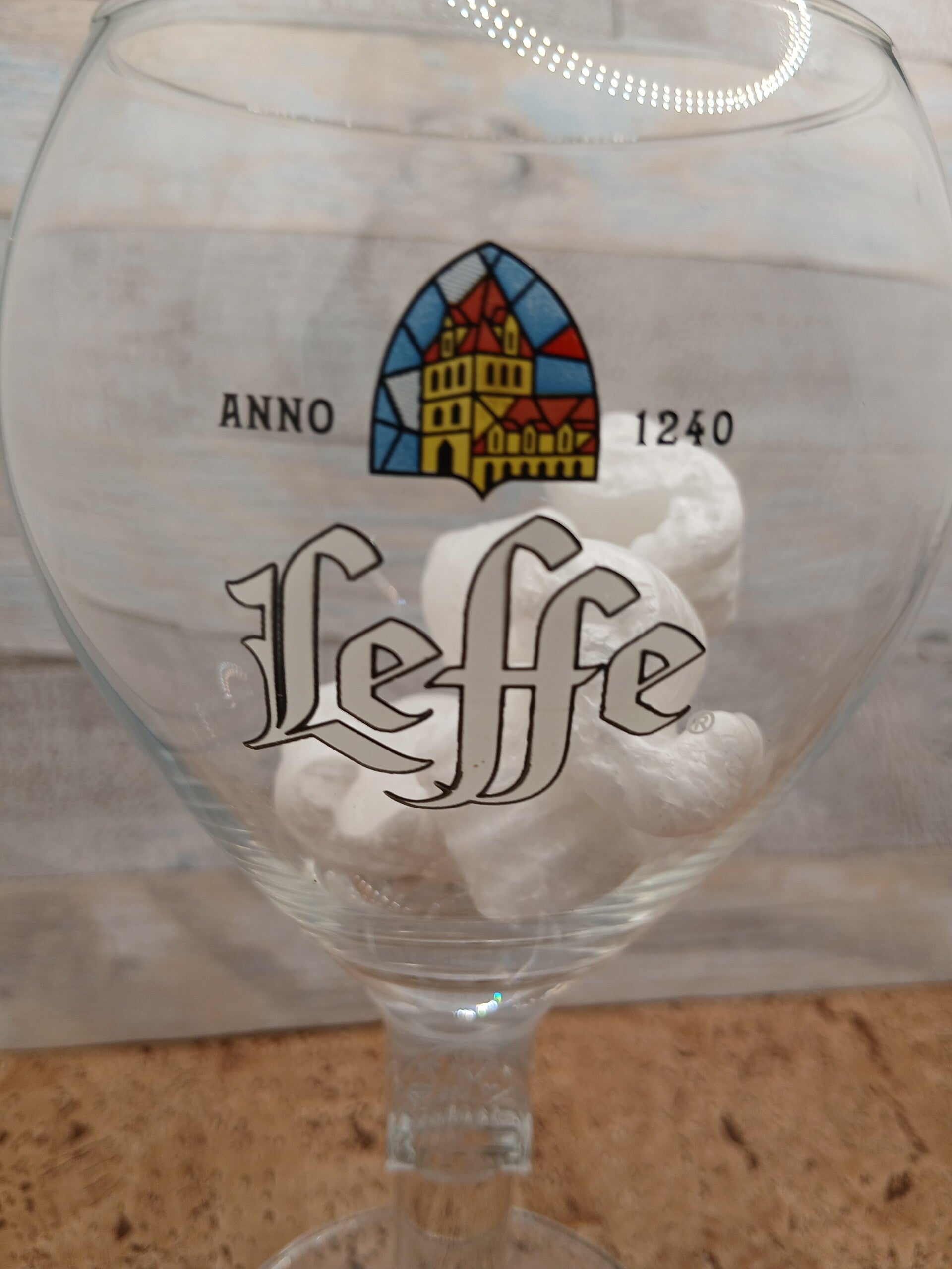 Bicchiere birra Leffe anno 1240, calice in vetro Ritzenhoff dalla tipica forma a coppa della capacità alla tacca di 33 cl.